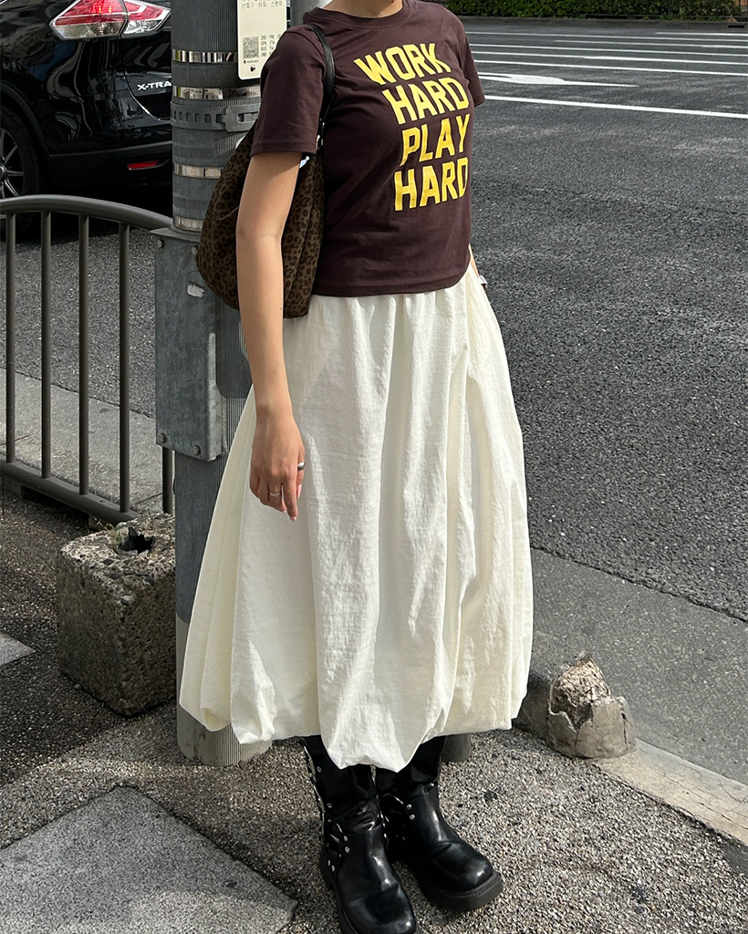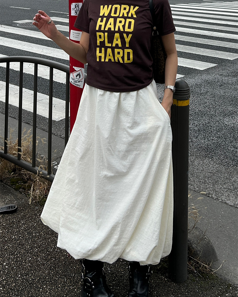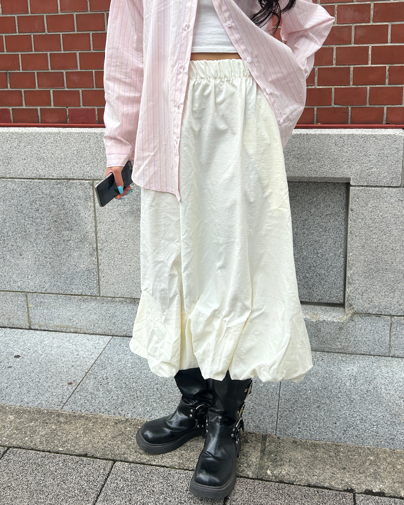 ウエストゴムバルーンナイロンスカート