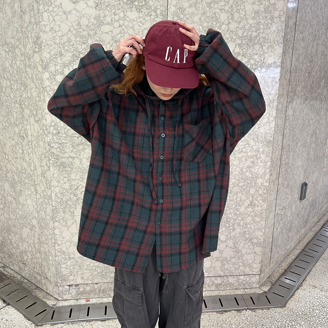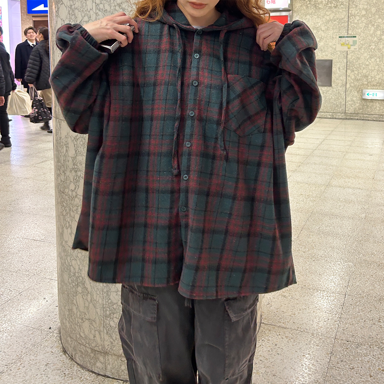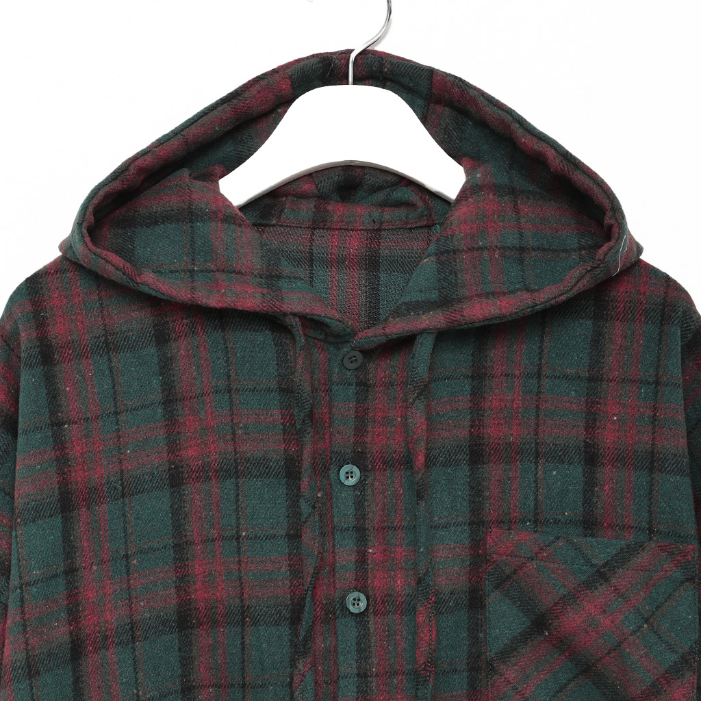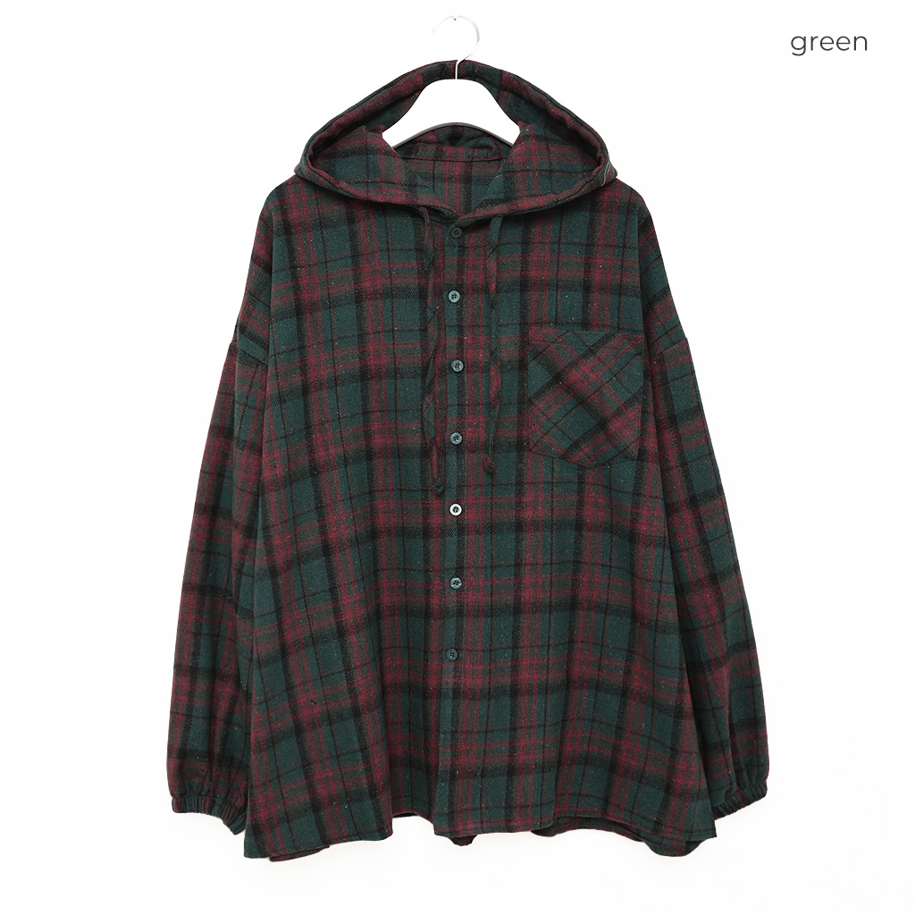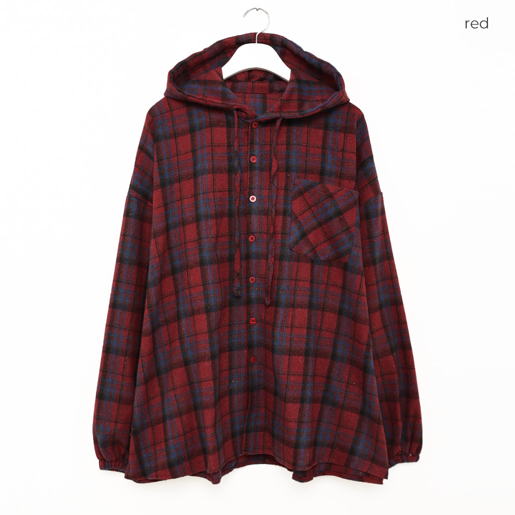 (ユニセックス) チェックフーディシャツジャケット