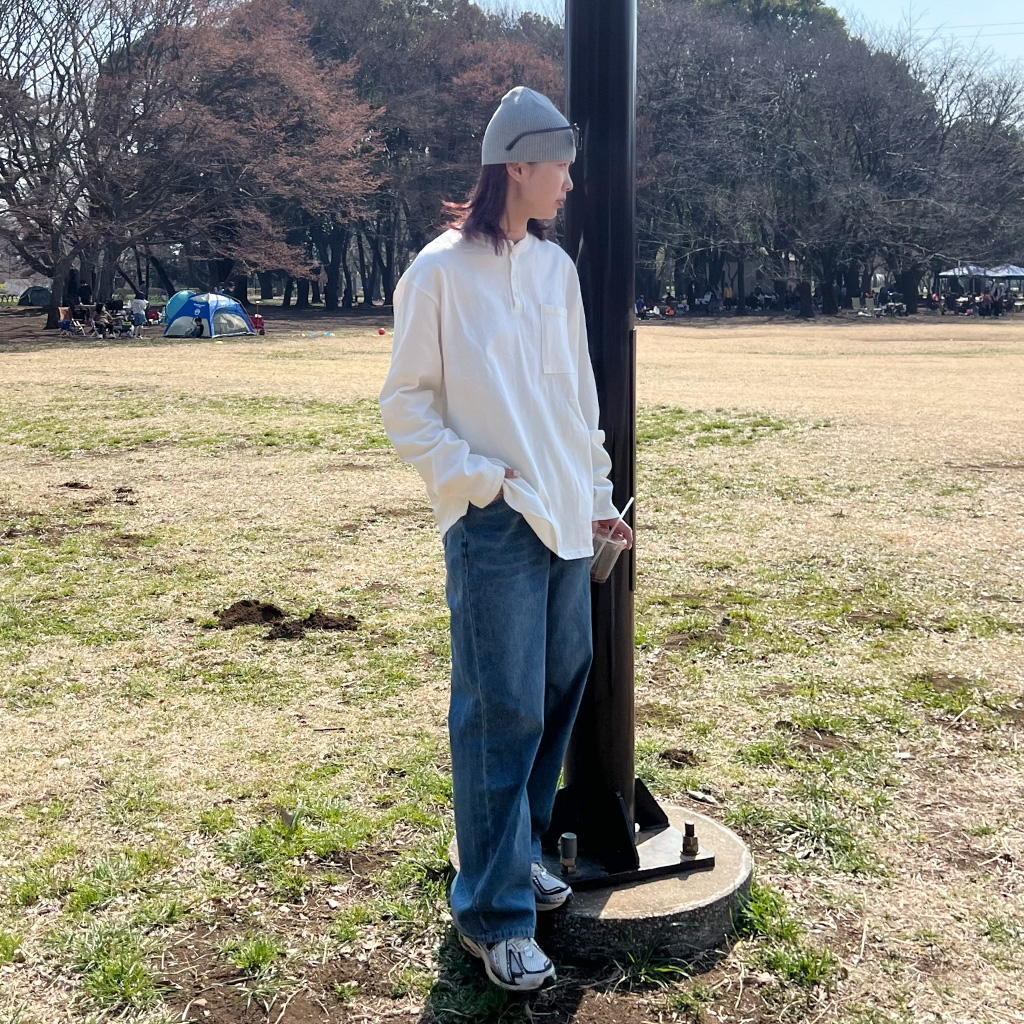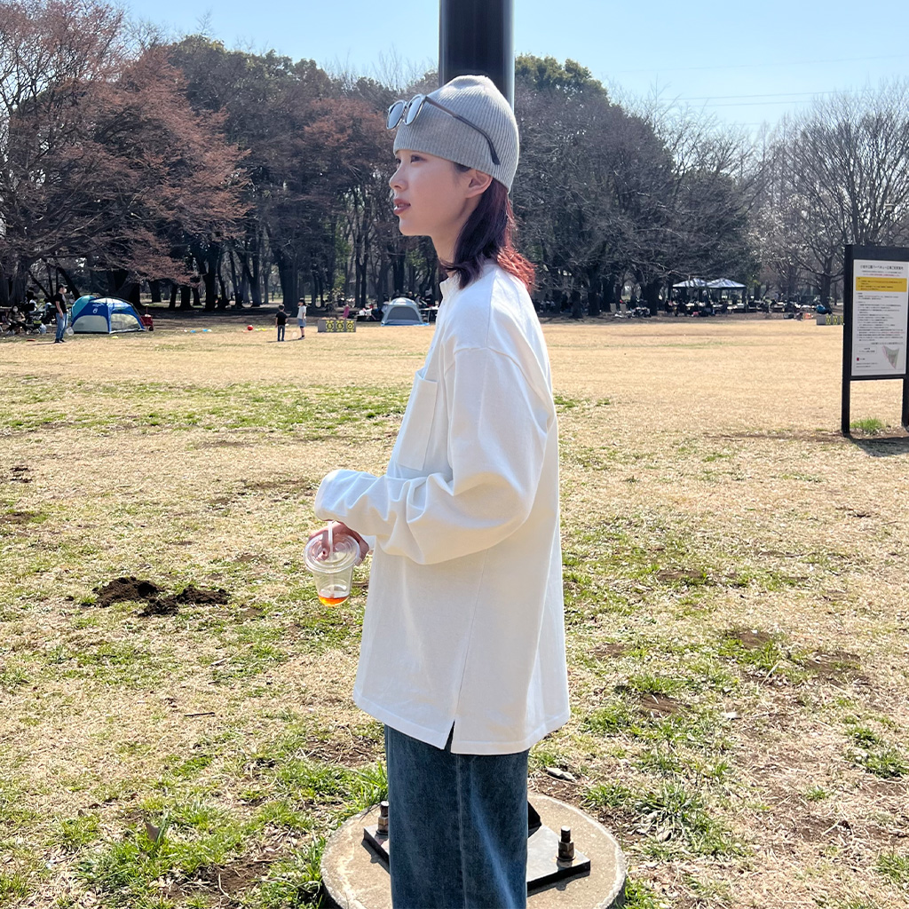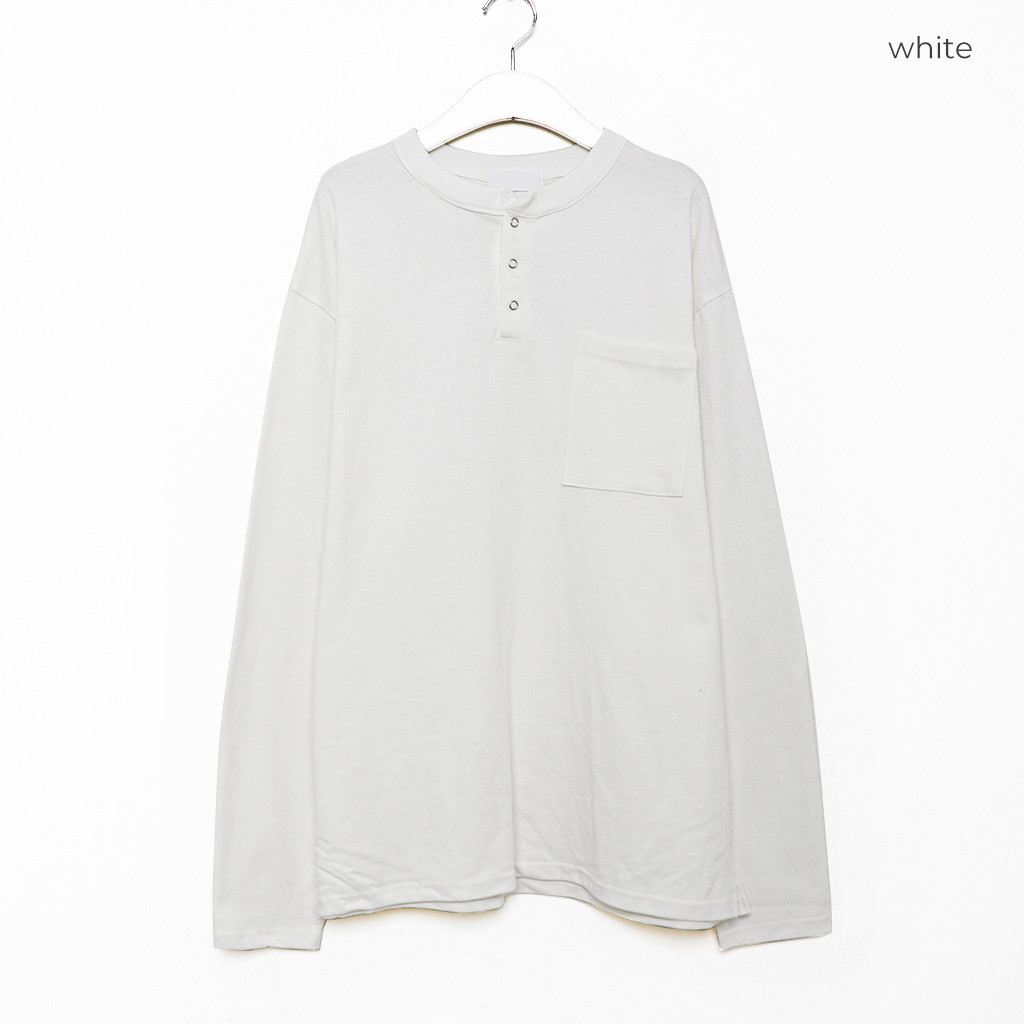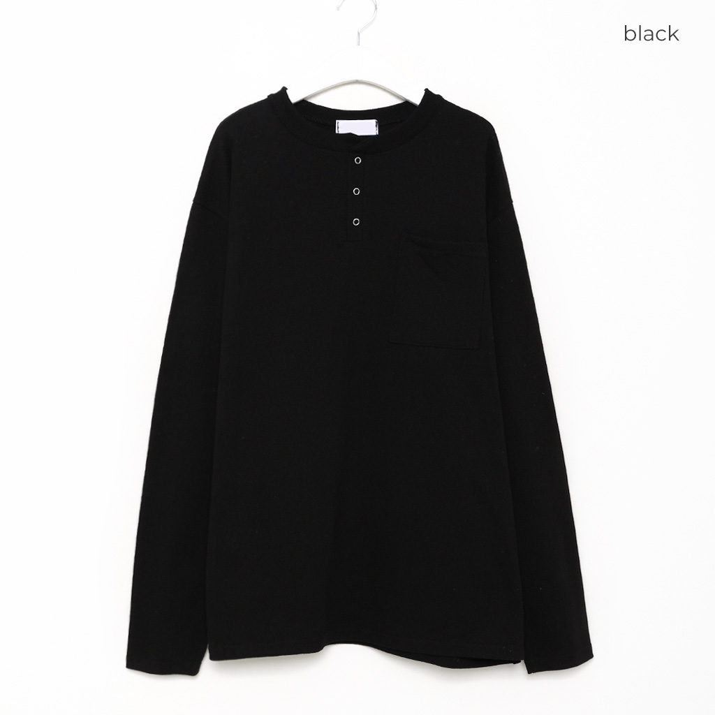 (ユニセックス)ヘンリーネックポケットロングTシャツ
