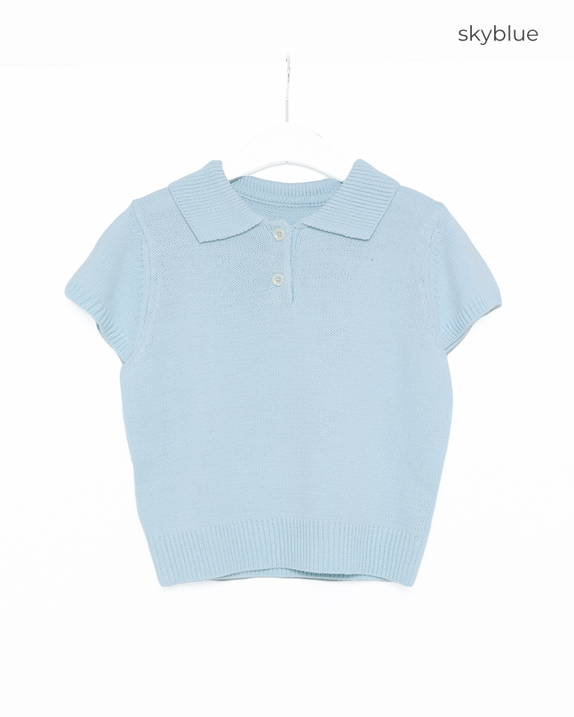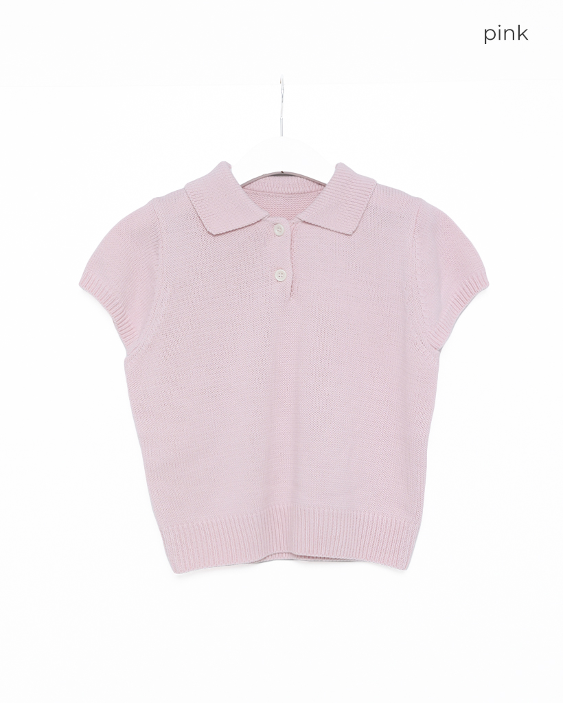 ツーボタンカラー半袖ニット