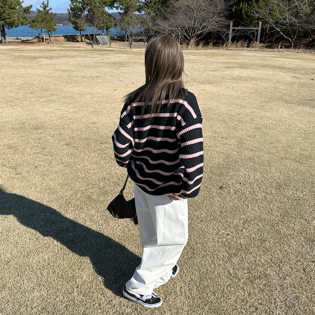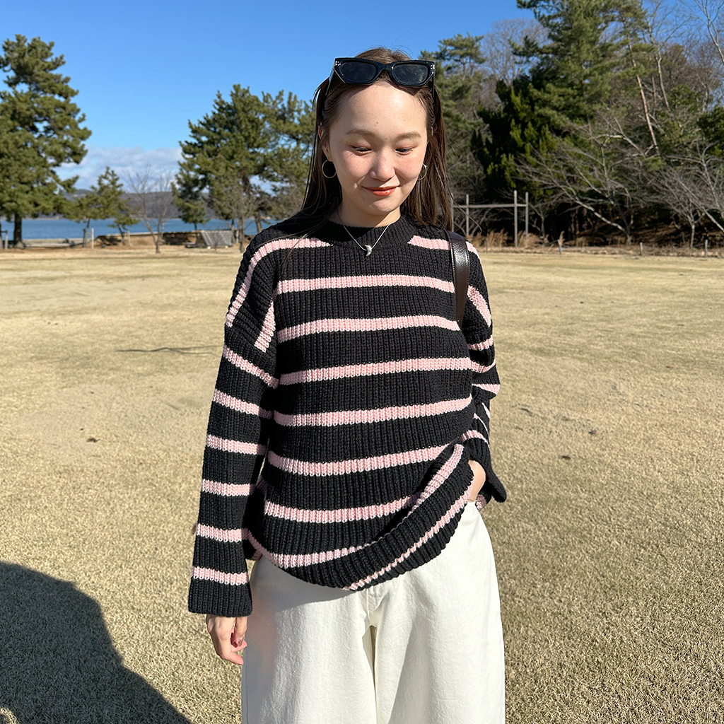 カラーポイントボーダーニット