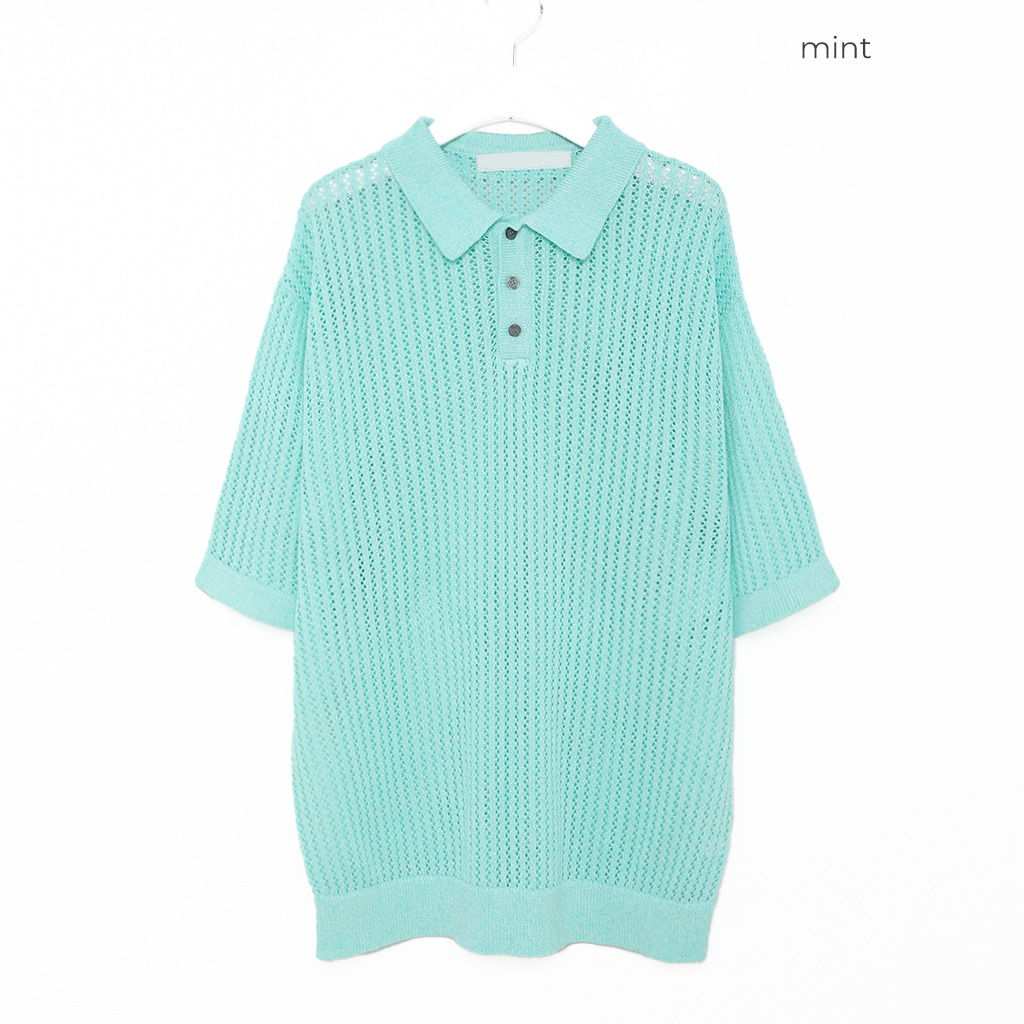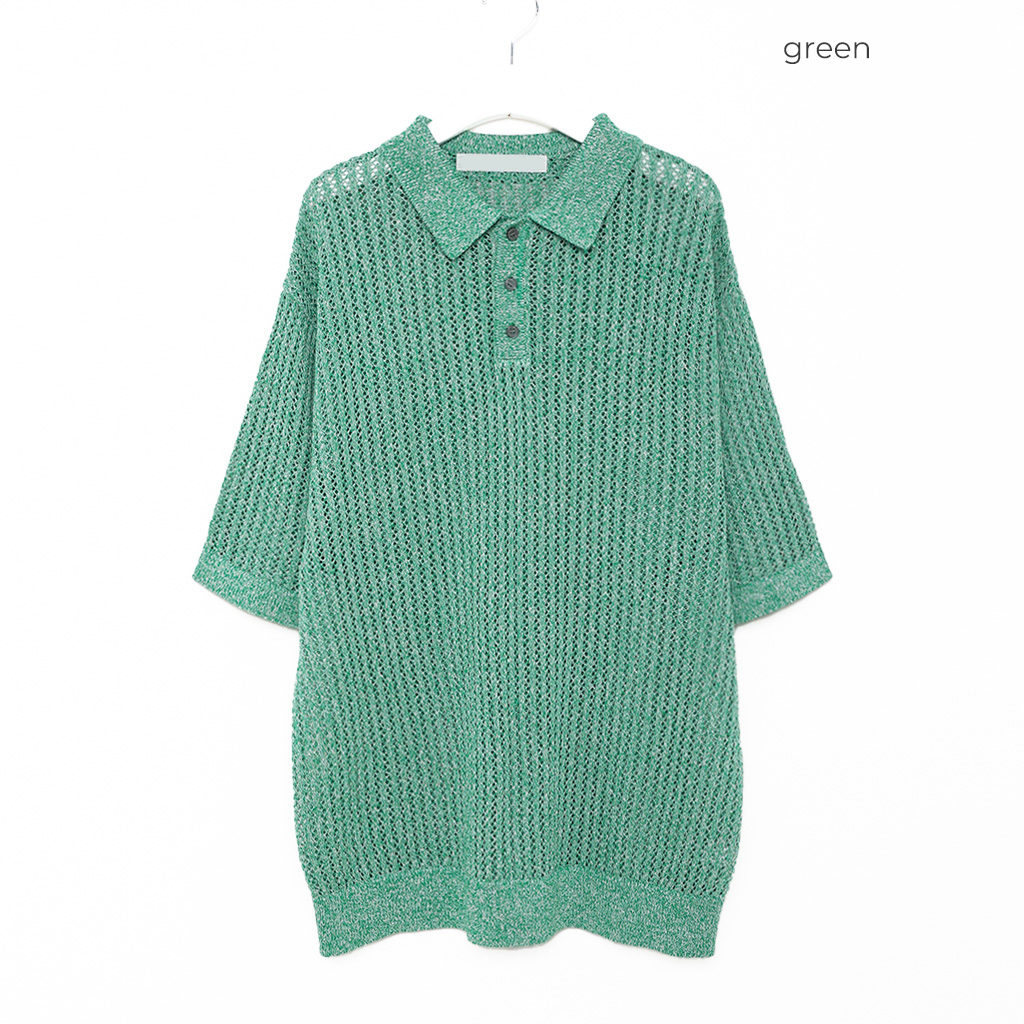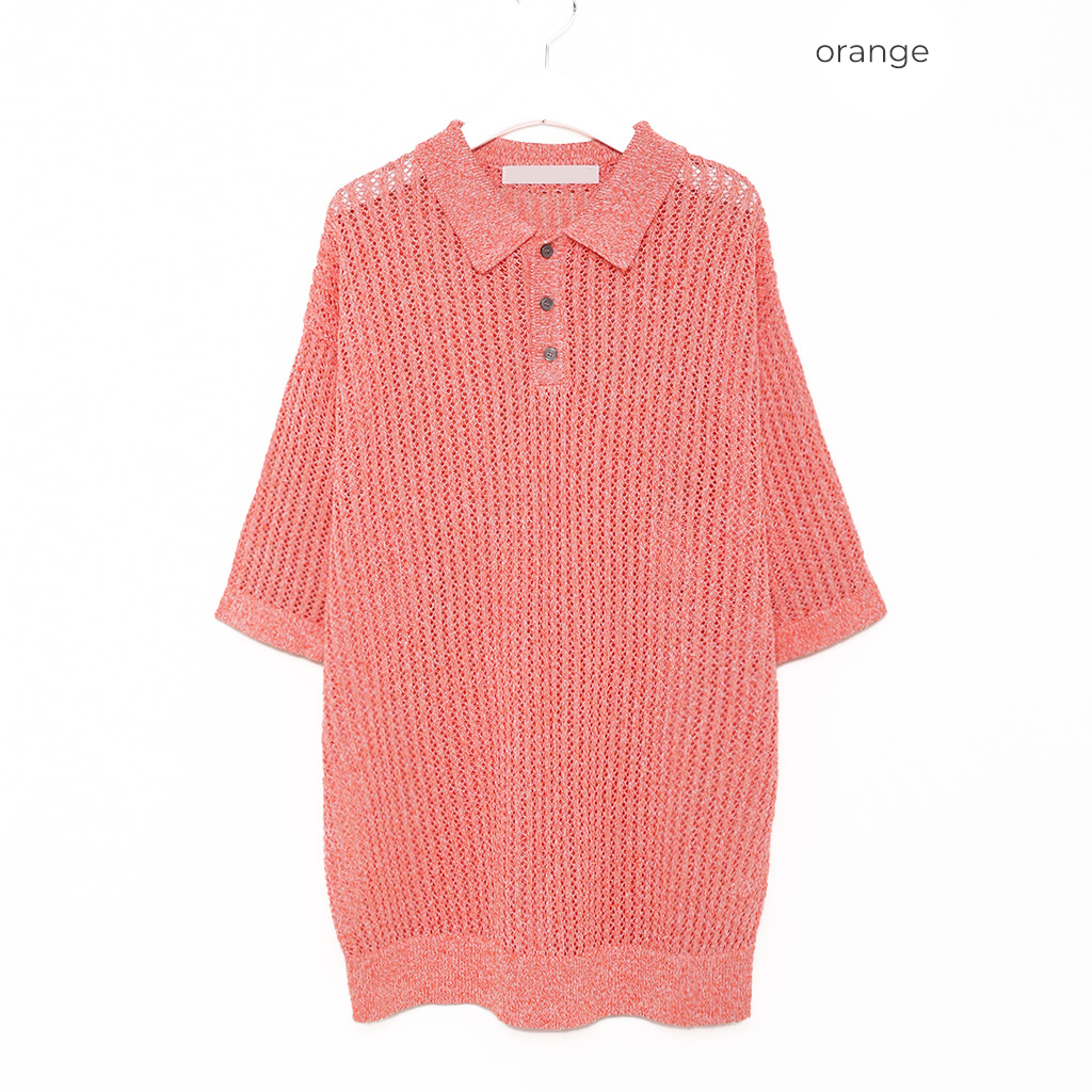 リブ半袖カラーニット