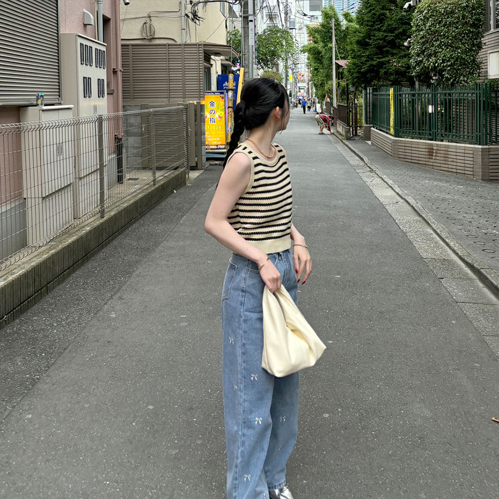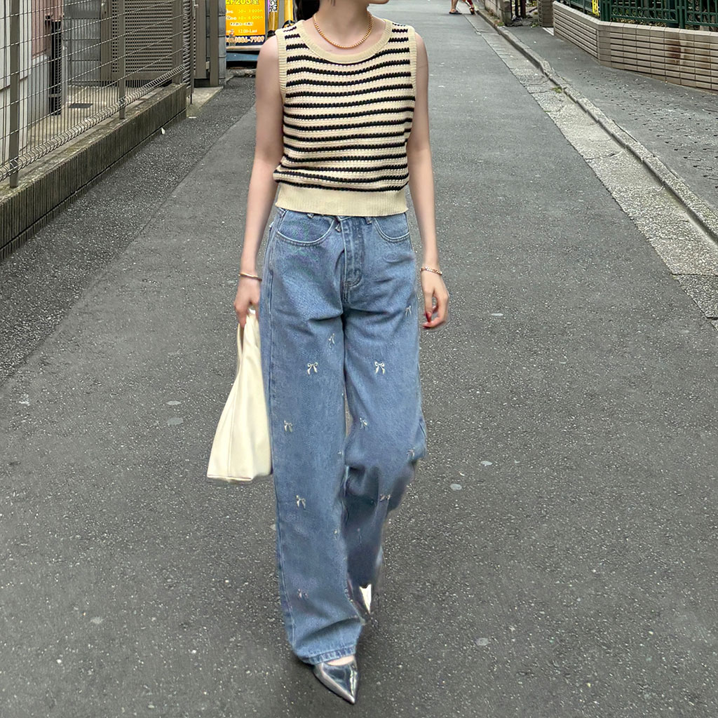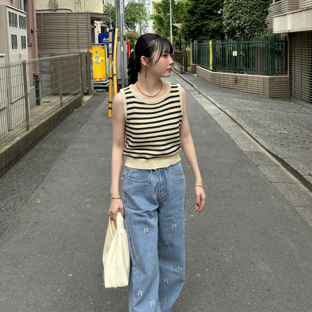 ボーダーニットノースリーブニット