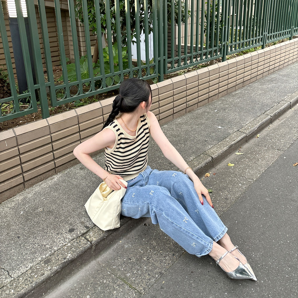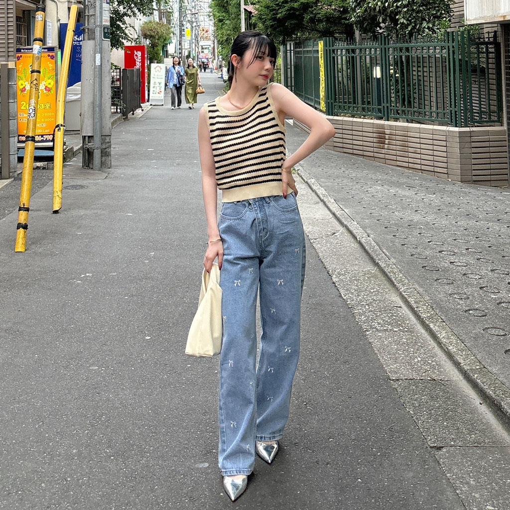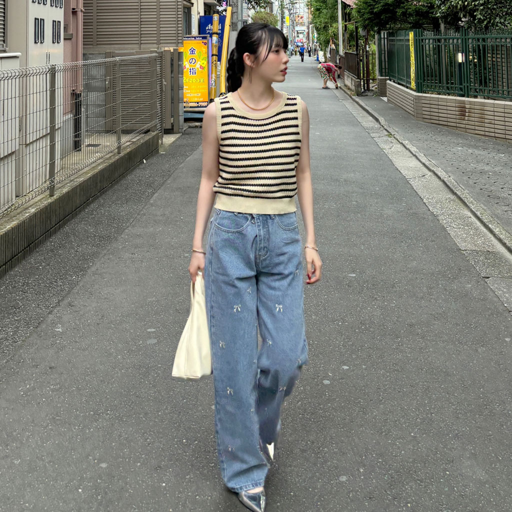 ボーダーニットノースリーブニット