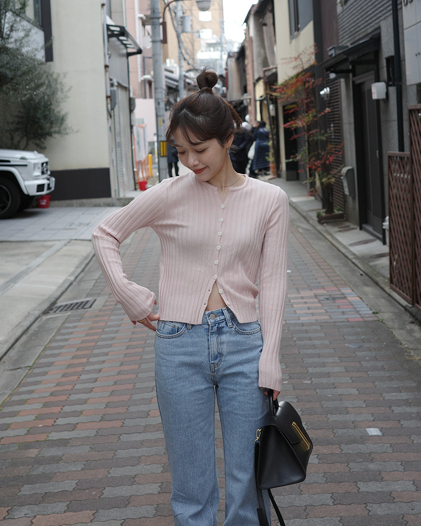 リブクロップドカーディガン