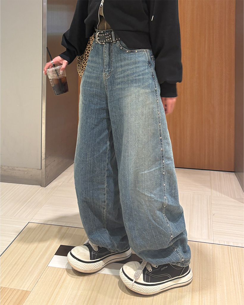 シームスタッズバルーンワイドジーンズ