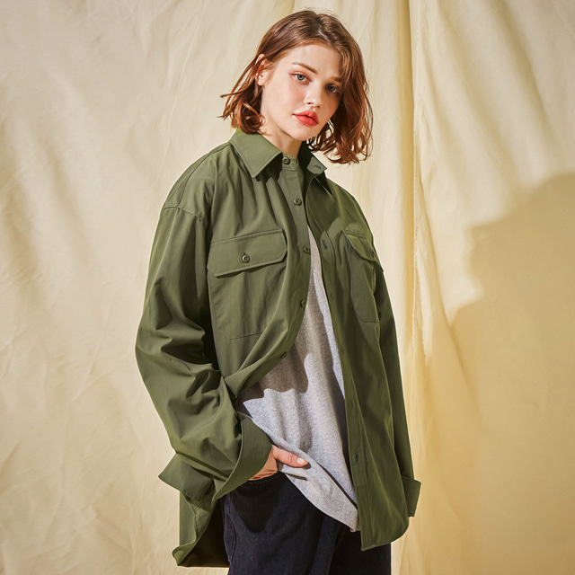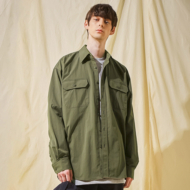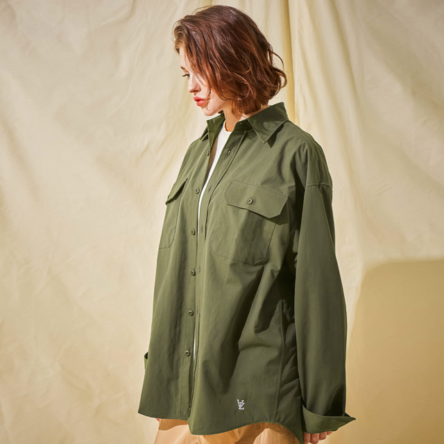 Unisex/[VARZAR] VZ Logo Big Over Fit Nylon Work Shirt Khaki