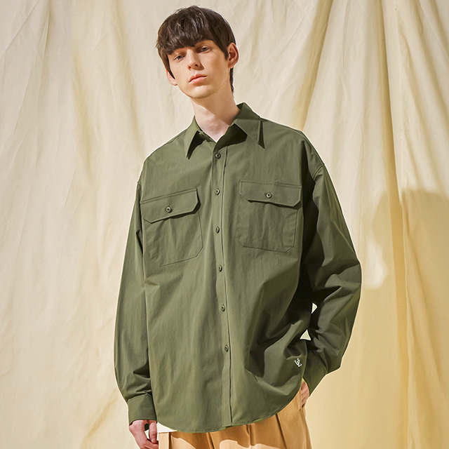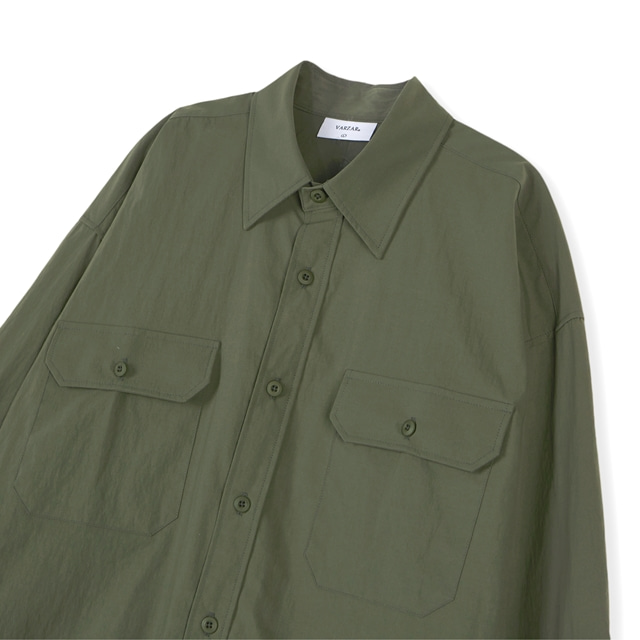 [VARZAR] VZ Logo Big Over Fit Nylon Work Shirt Khaki