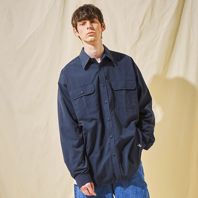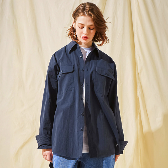 Unisex/[VARZAR] VZ Logo Big Over Fit Nylon Work Shirt Navy