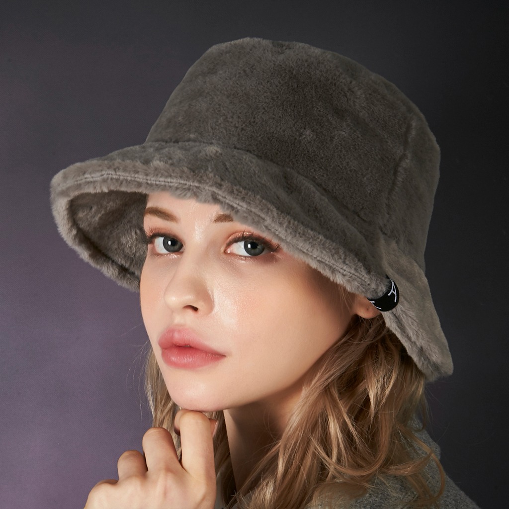 Unisex/[VARZAR] Fur logo point bucket hat gray