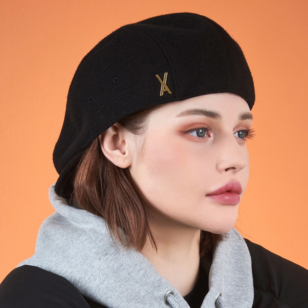Unisex/[VARZAR] Stud Logo Retro Wool Beret Black