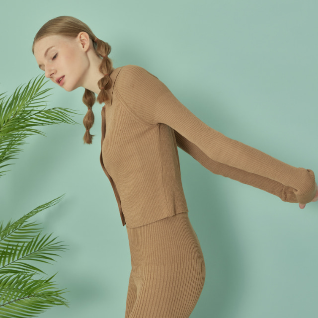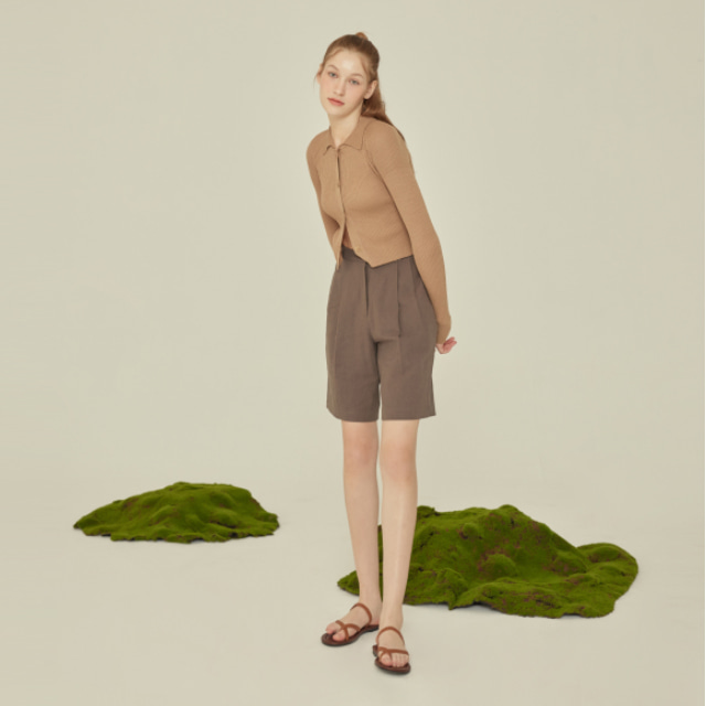 Women's/CROP KNIT COLLAR CARDIGAN_Beige