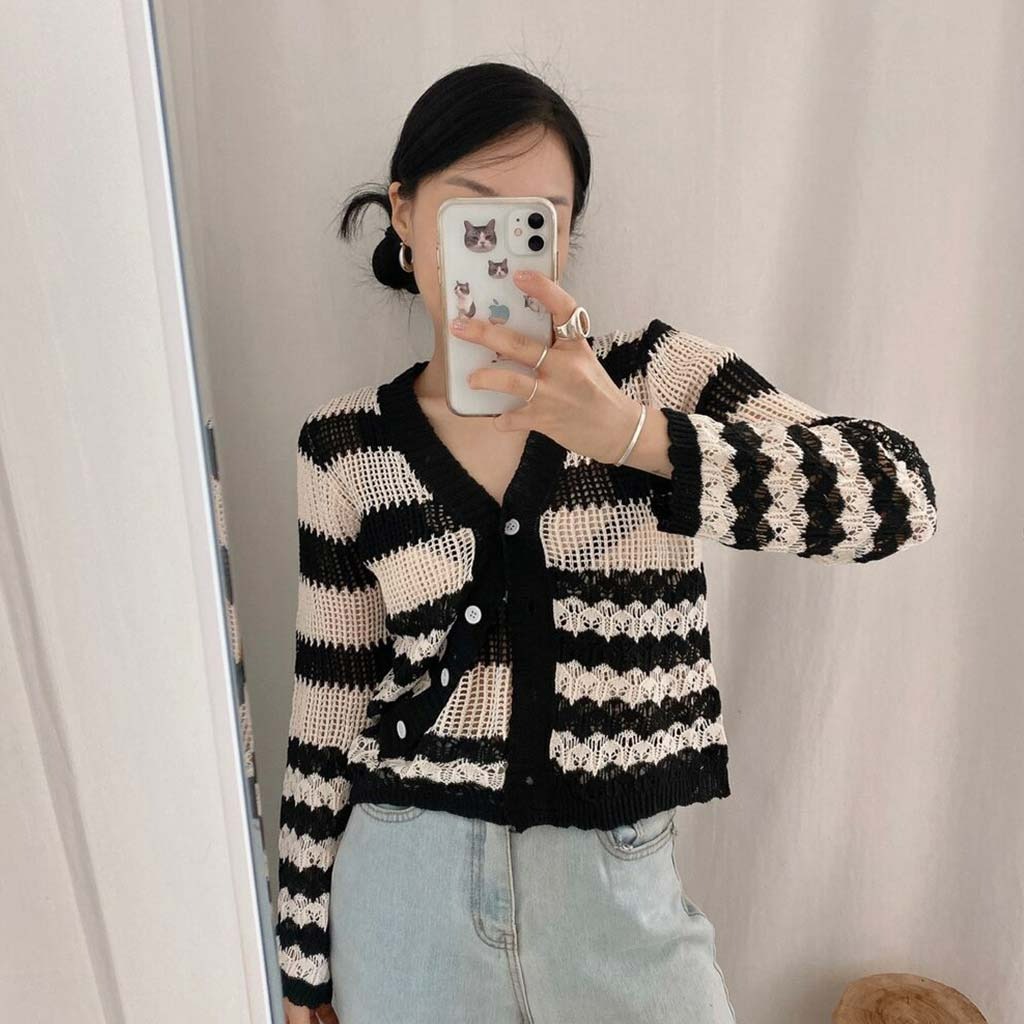 Women's/ボーダーノースリーブ&カーディガンニットセット
