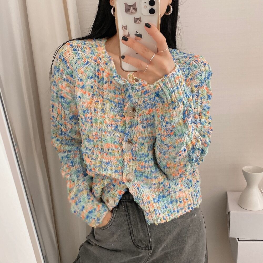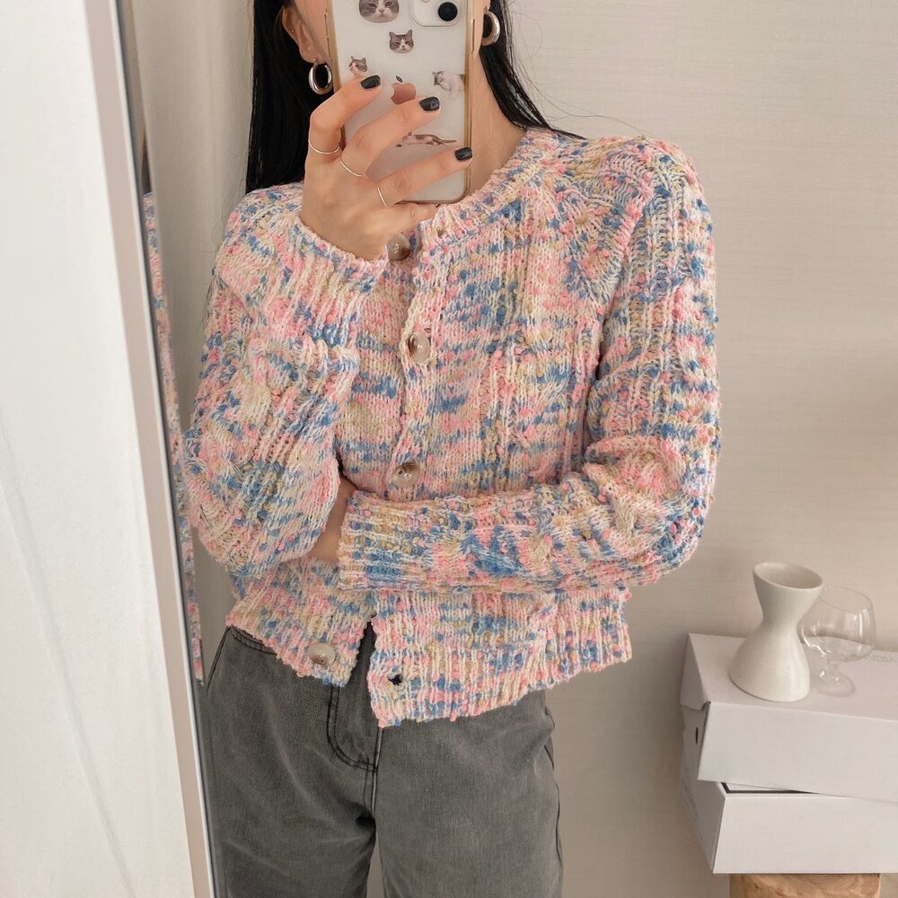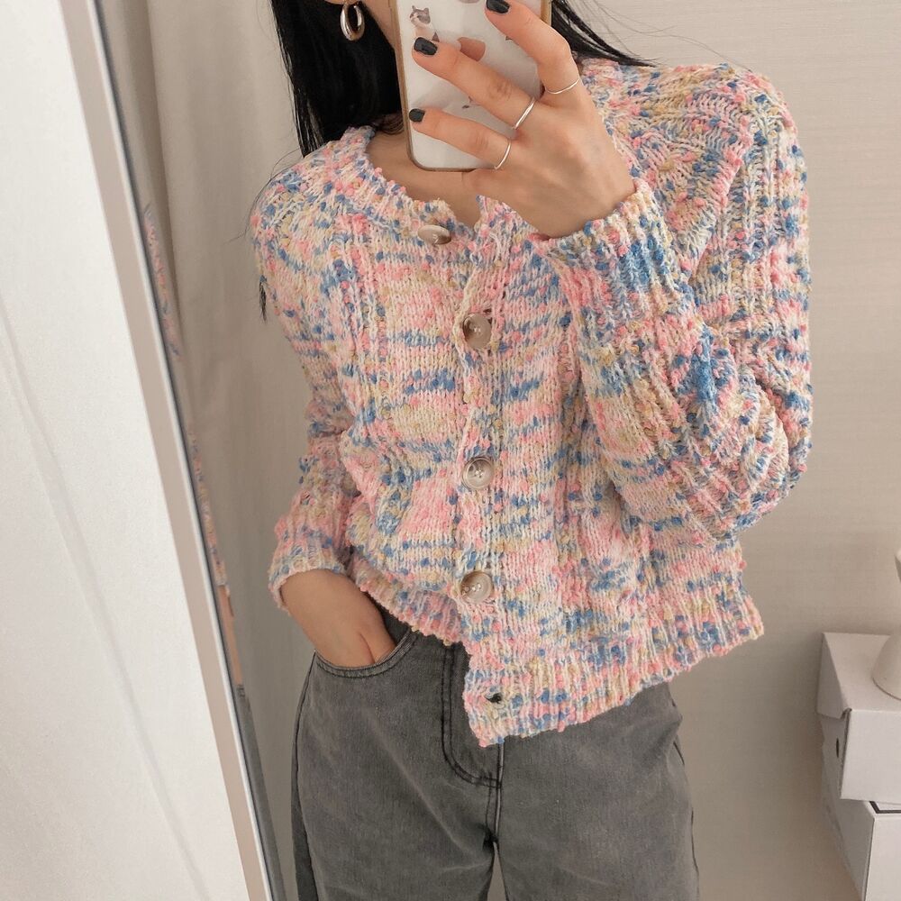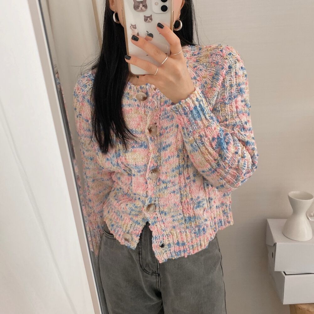 レインボーポップコーンカーディガンニット