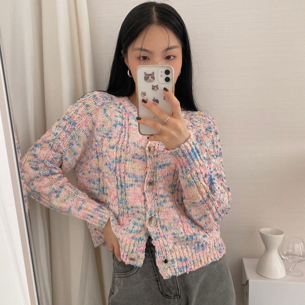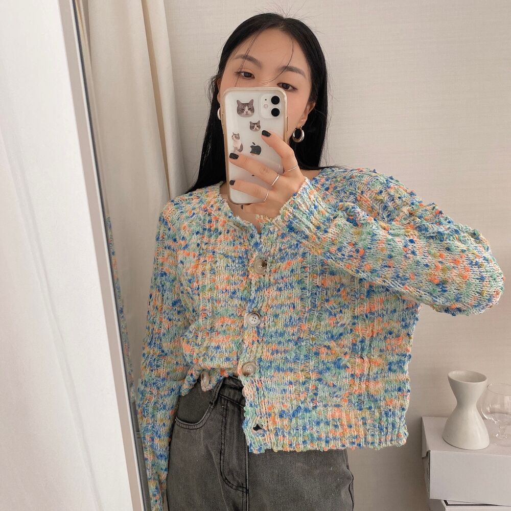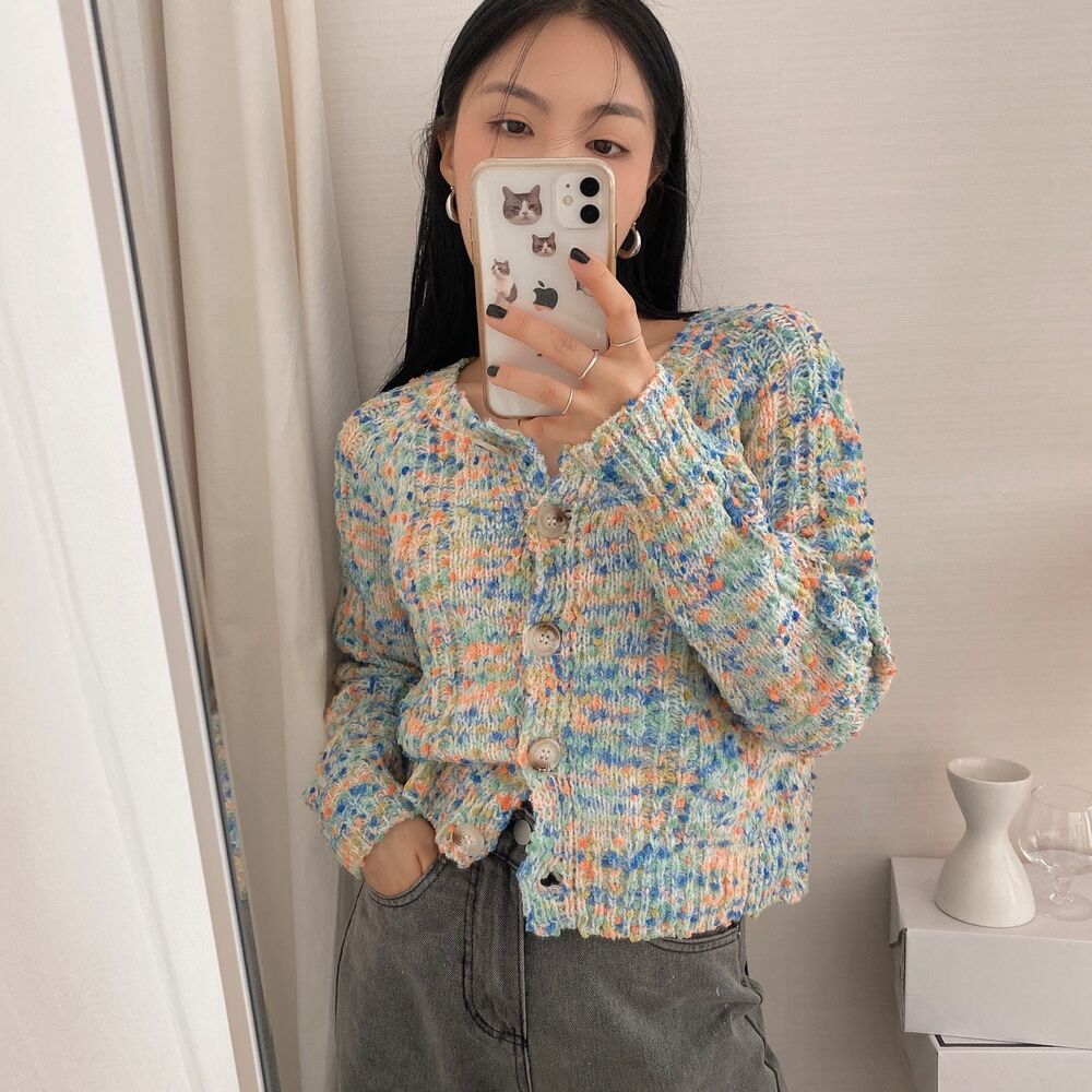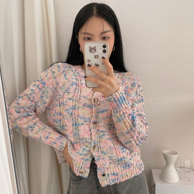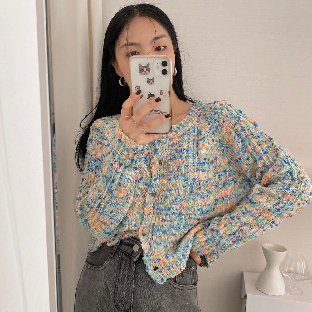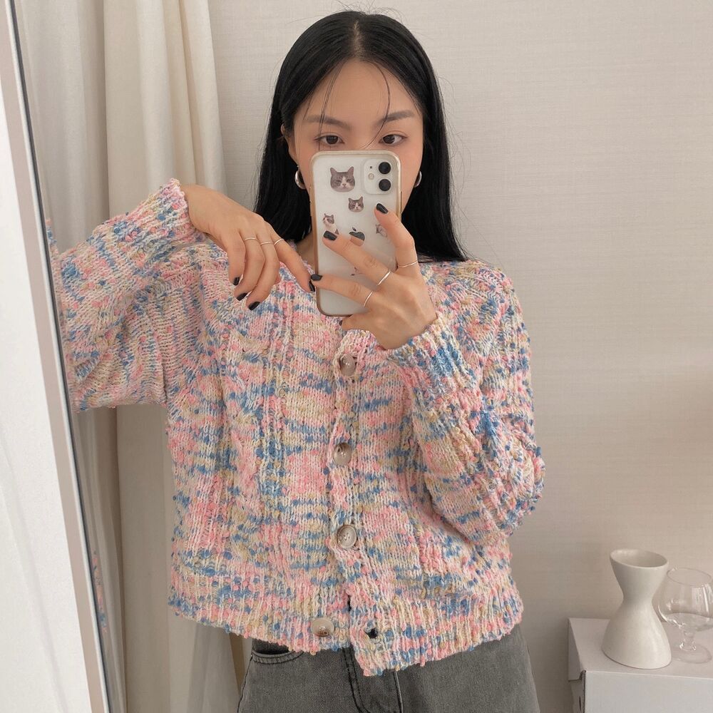 レインボーポップコーンカーディガンニット