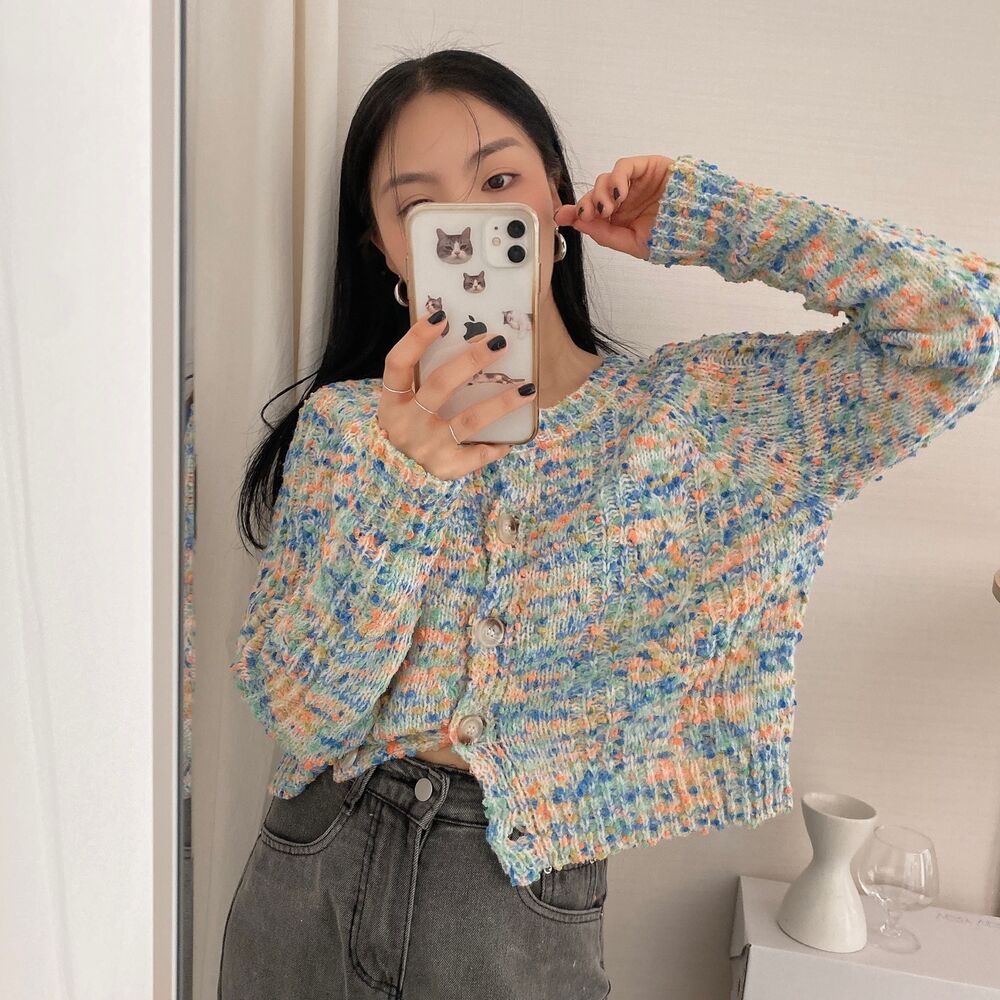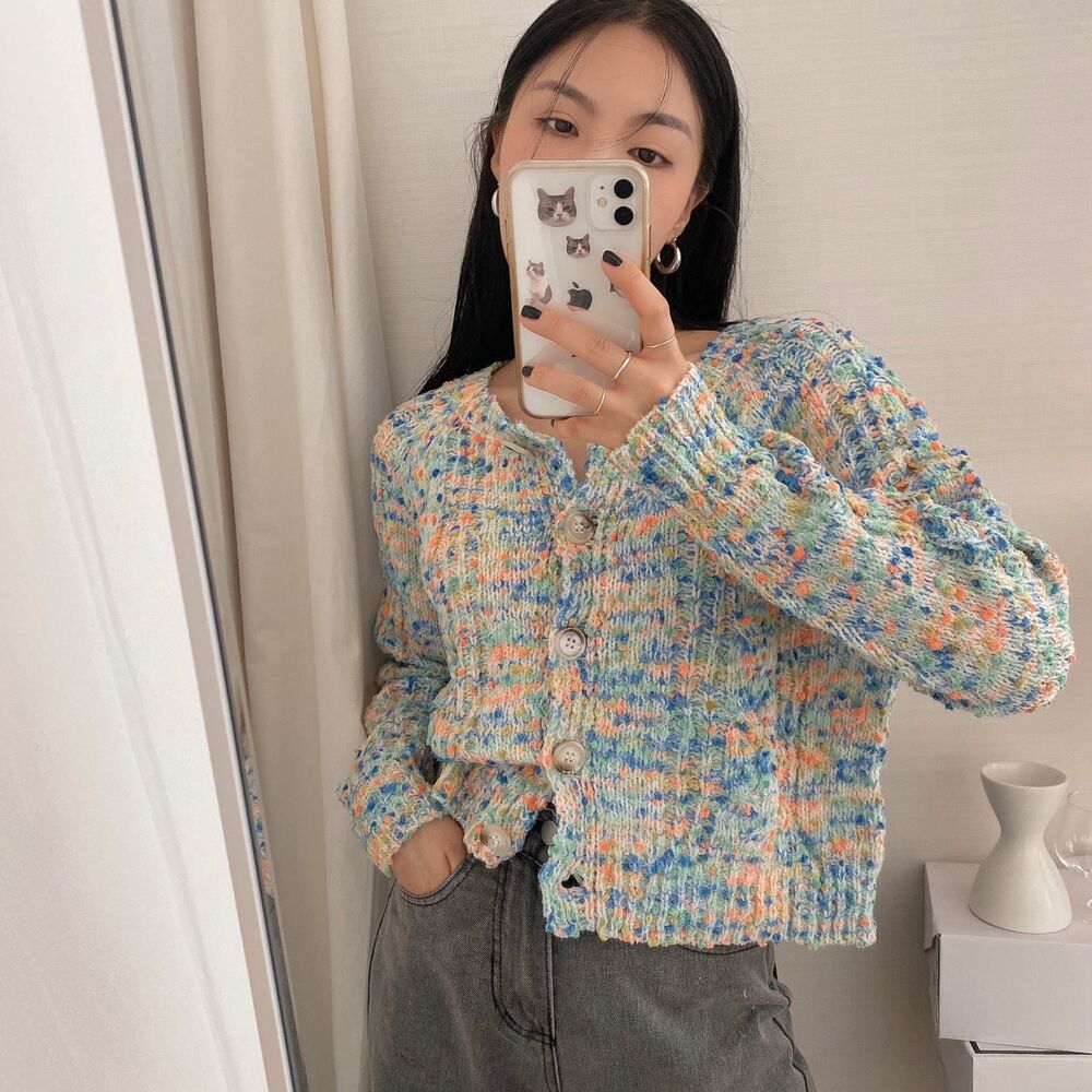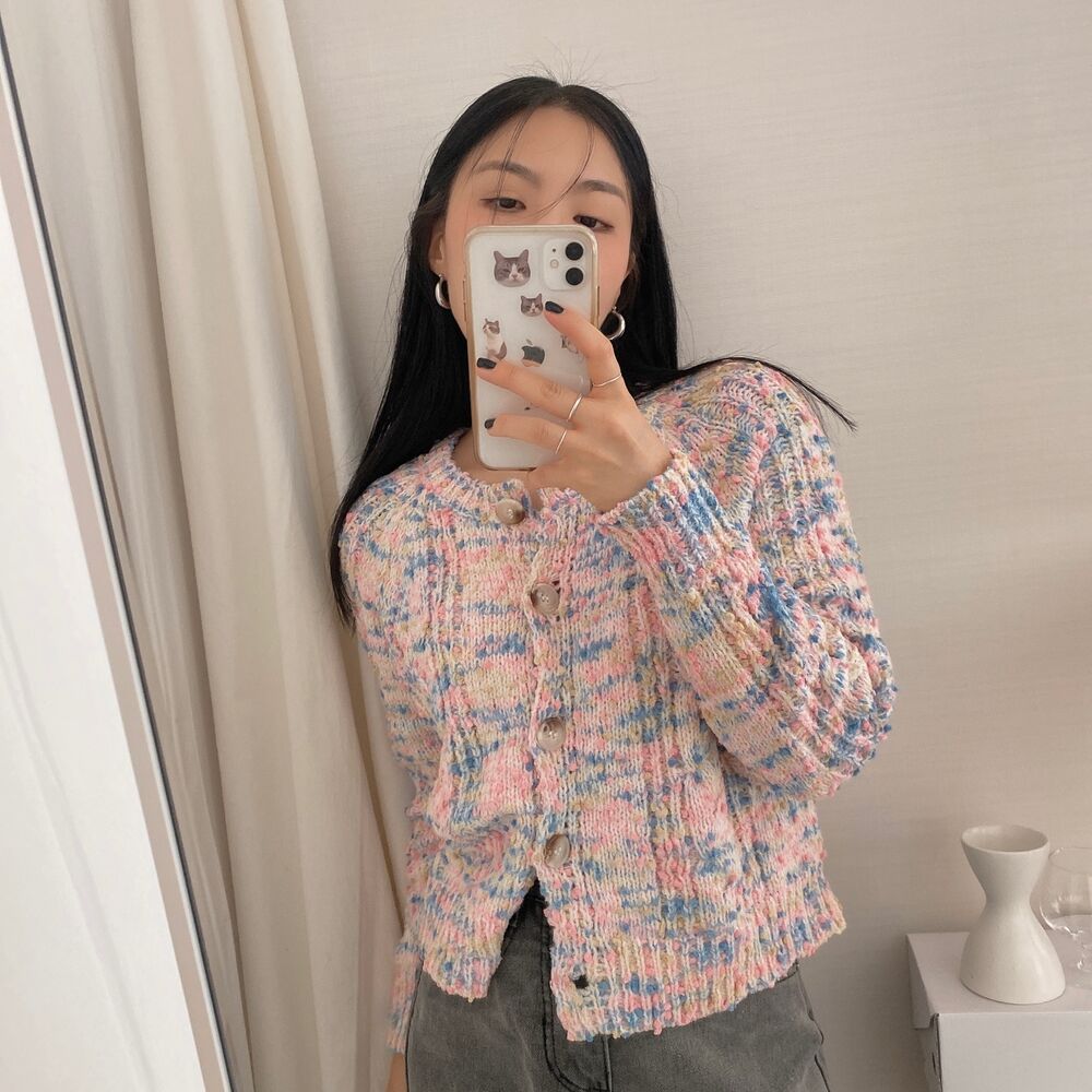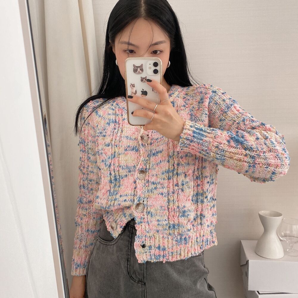 レインボーポップコーンカーディガンニット