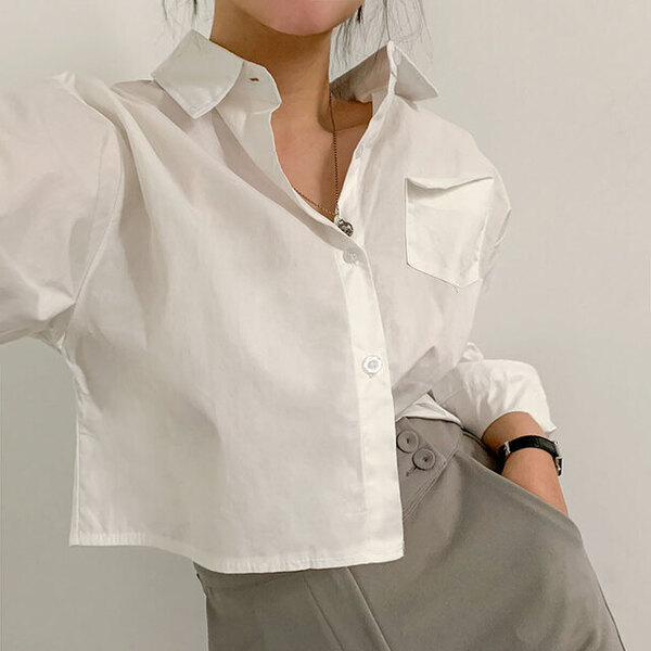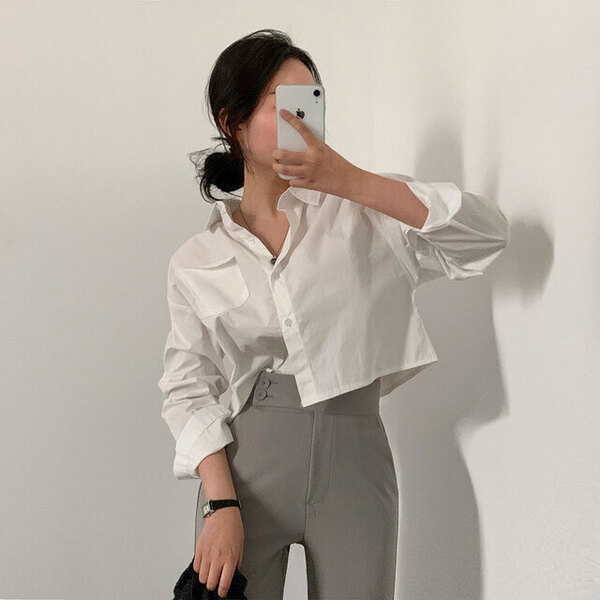 Women's/後ろピンタックポケットクロップシャツ