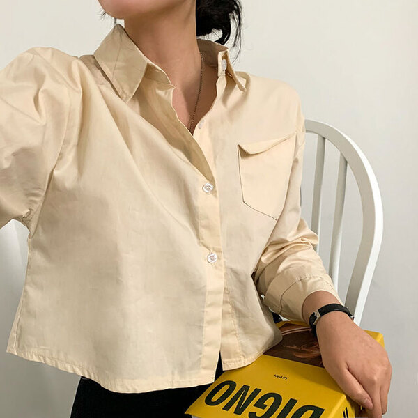 後ろピンタックポケットクロップシャツ