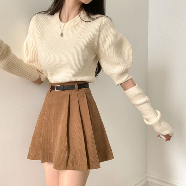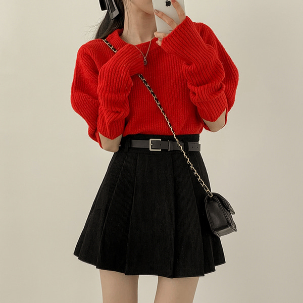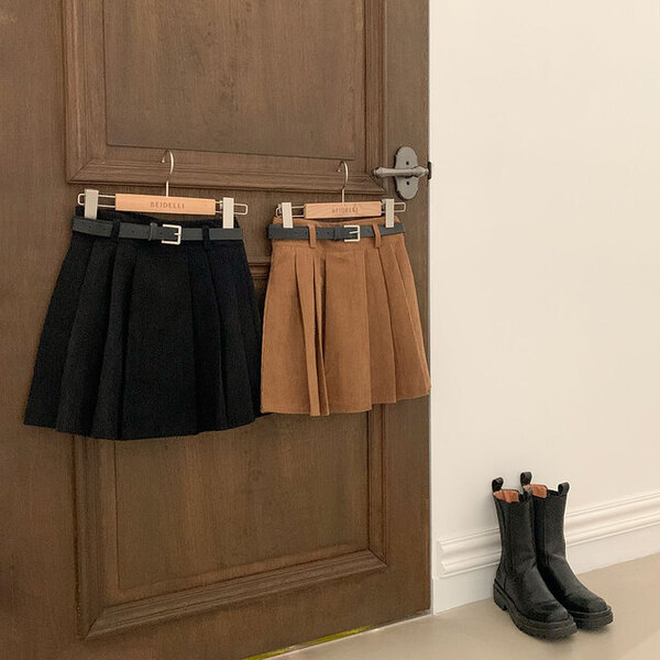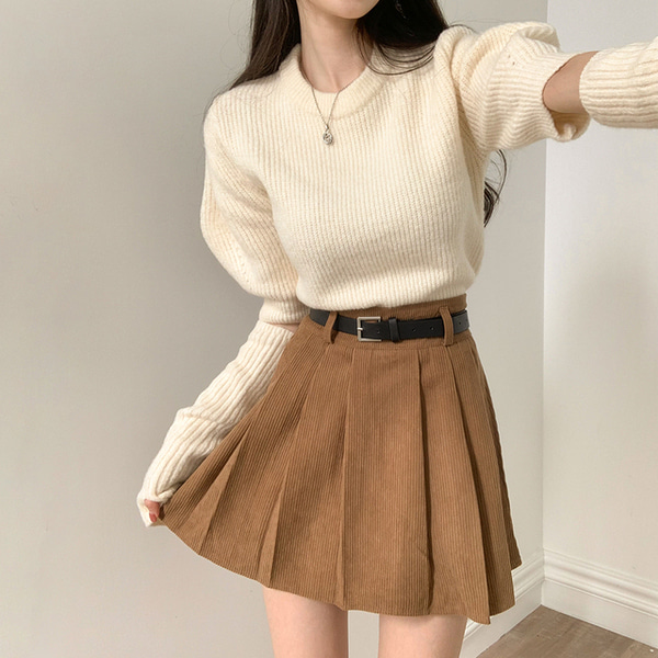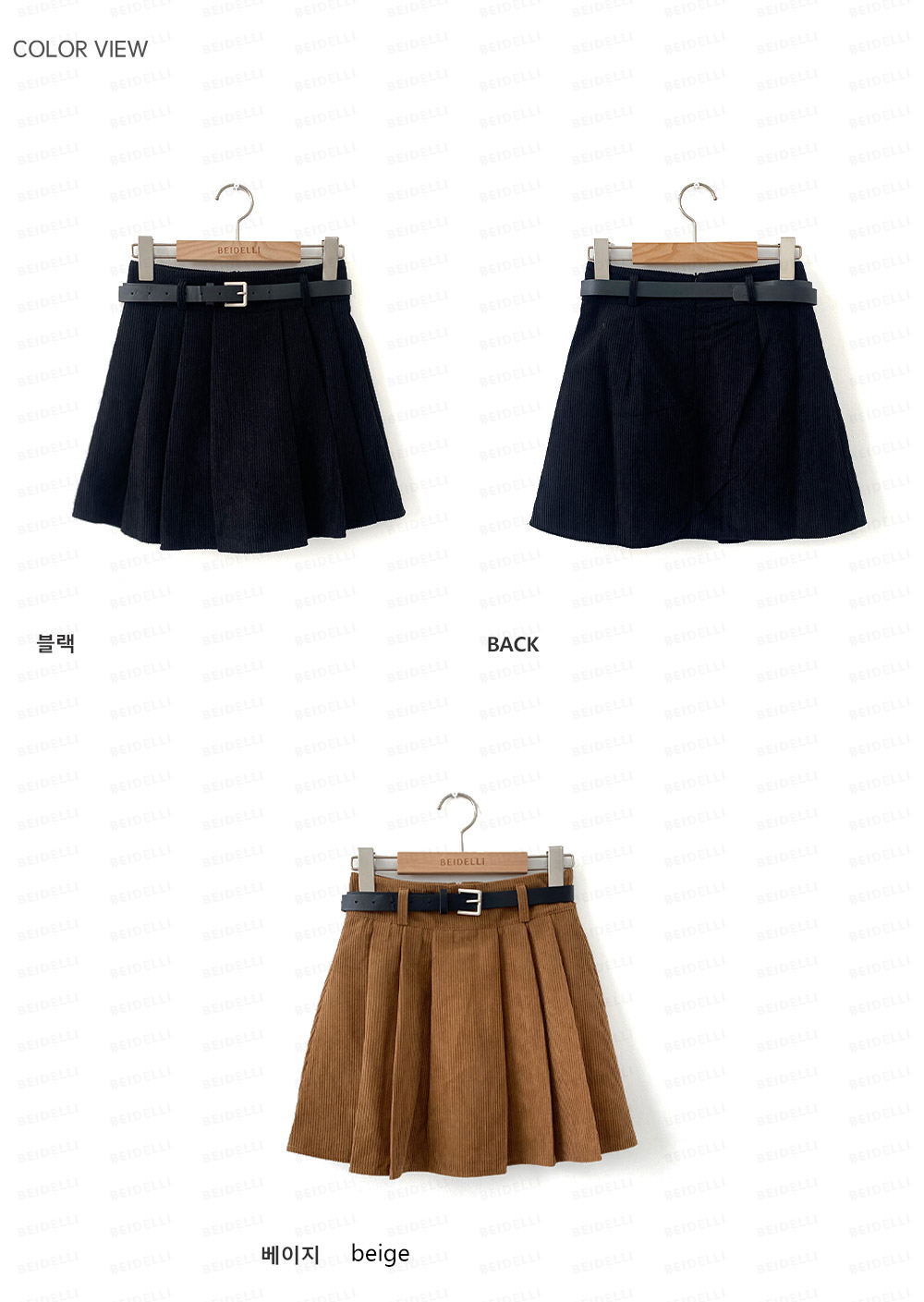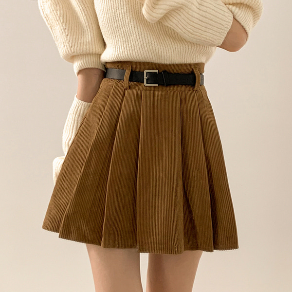 [スカート+ベルトset]コーデュロイプリーツスカート