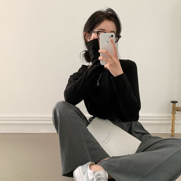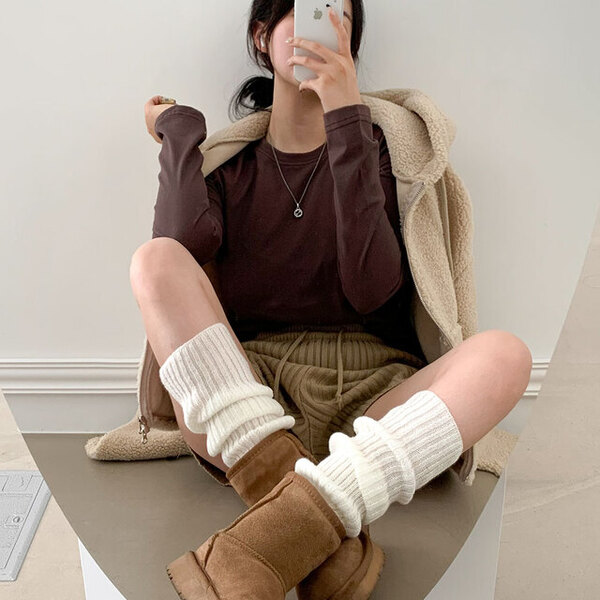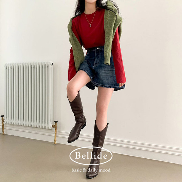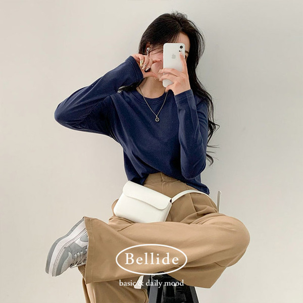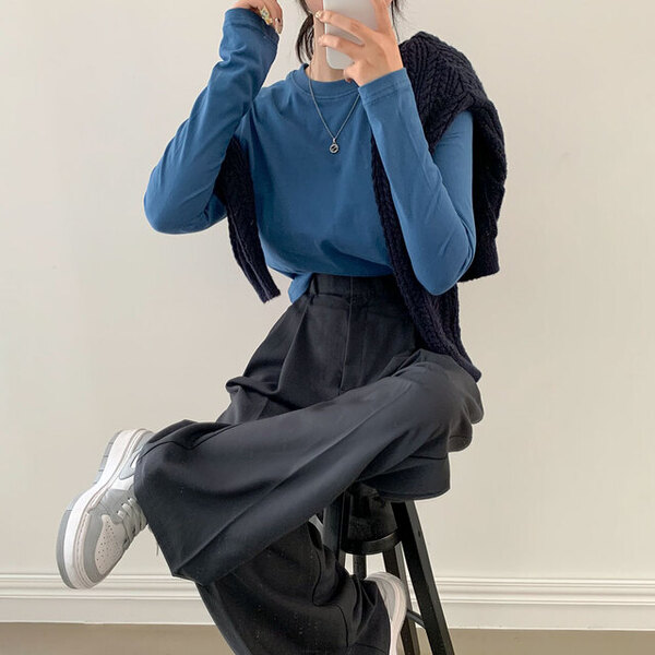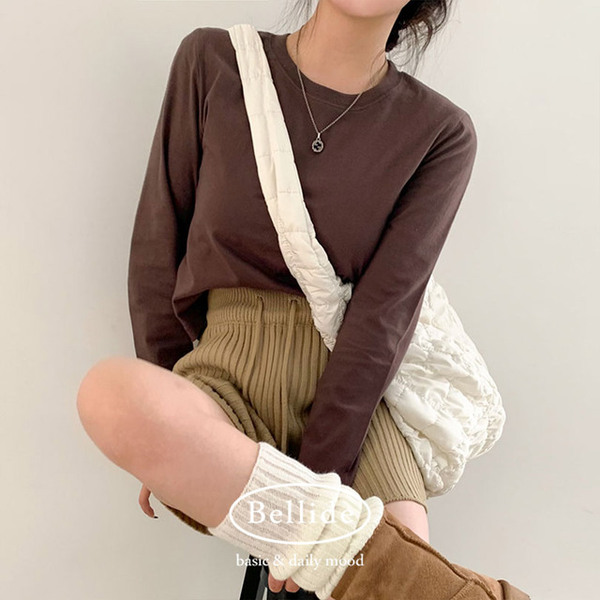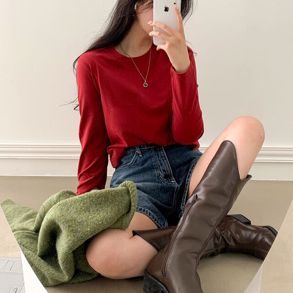 (ORIGINAL) ハーフクロップド無地長袖Tシャツ