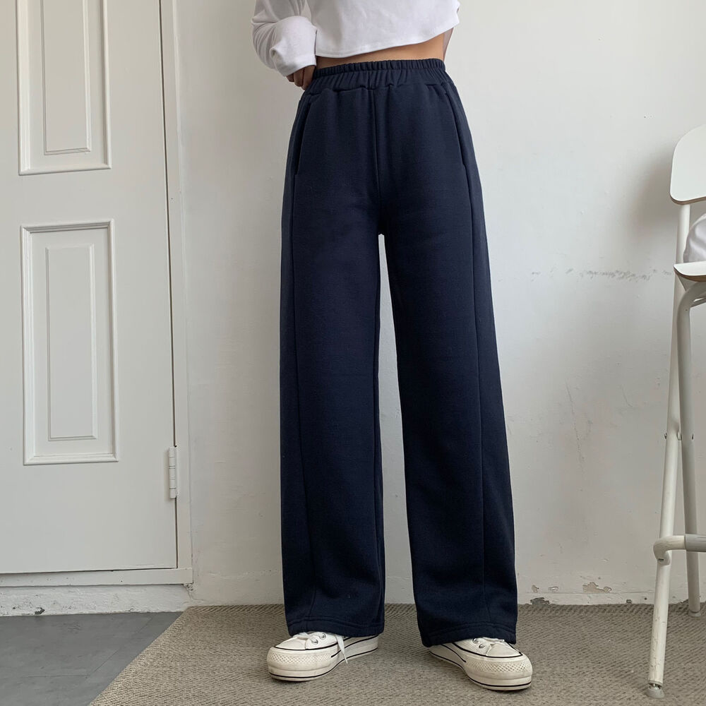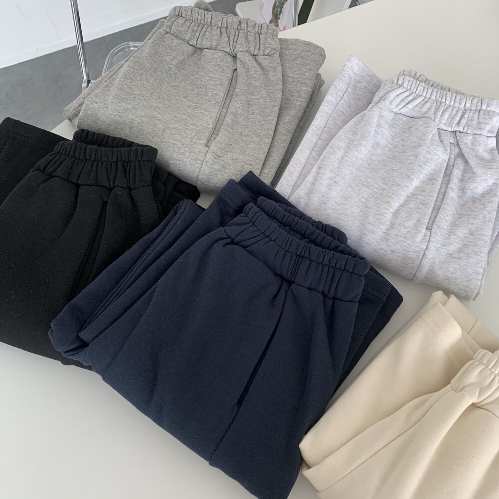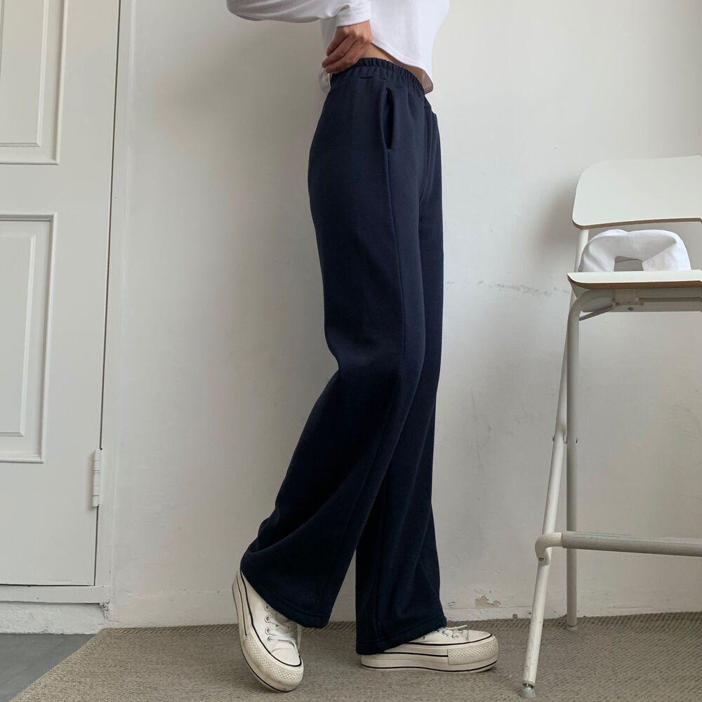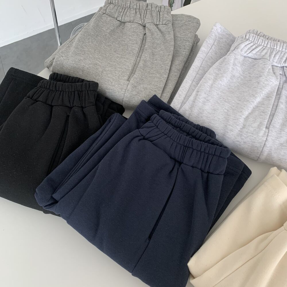 [起毛]ハイウエストワイドストレートバンディングトレーニングパンツ