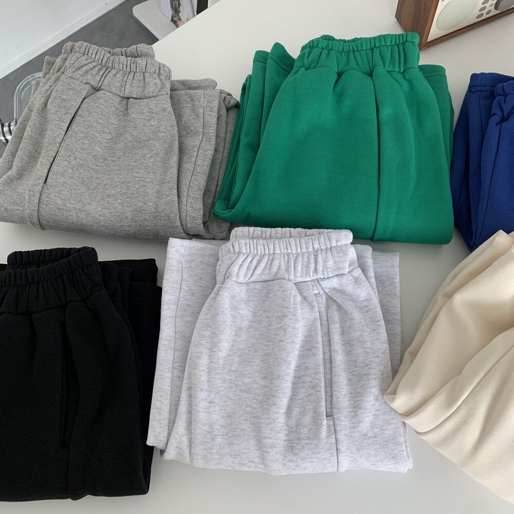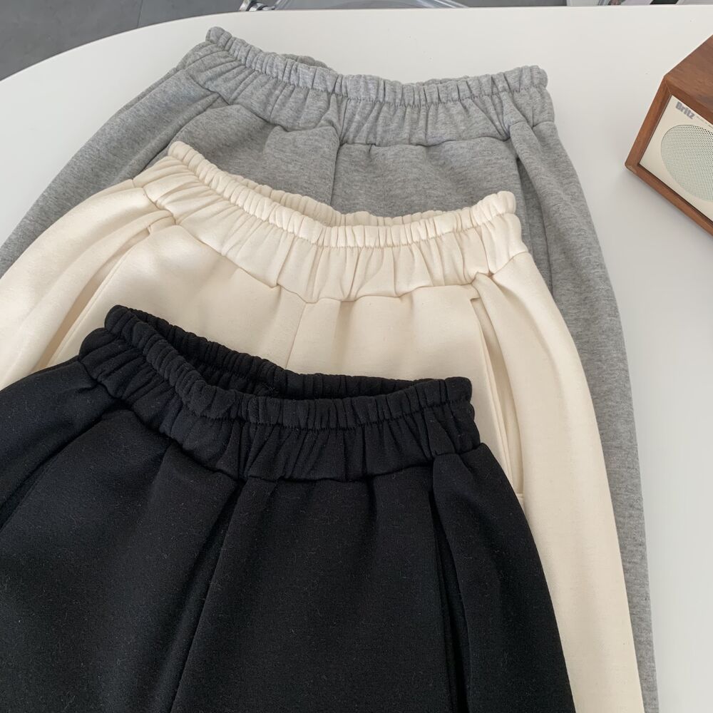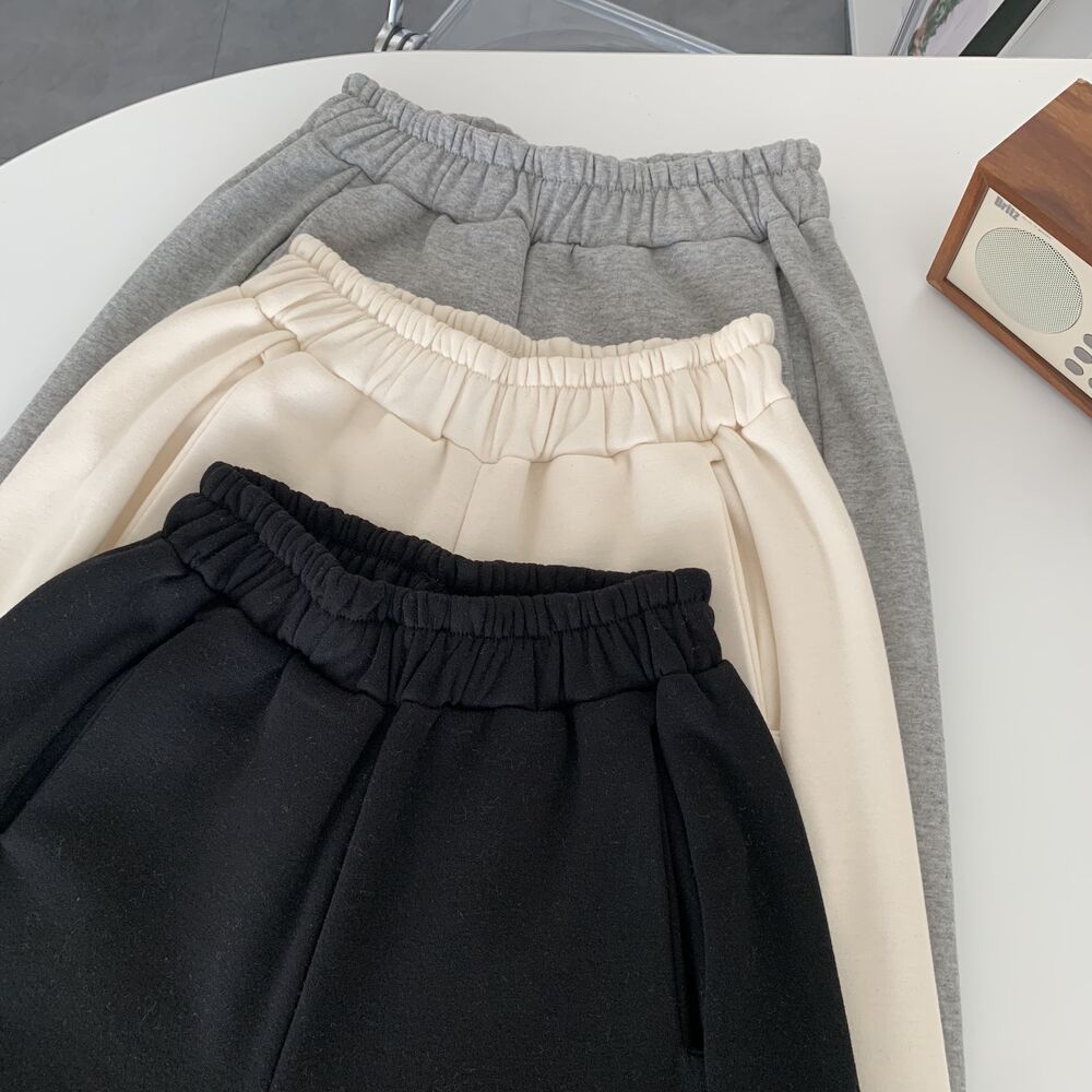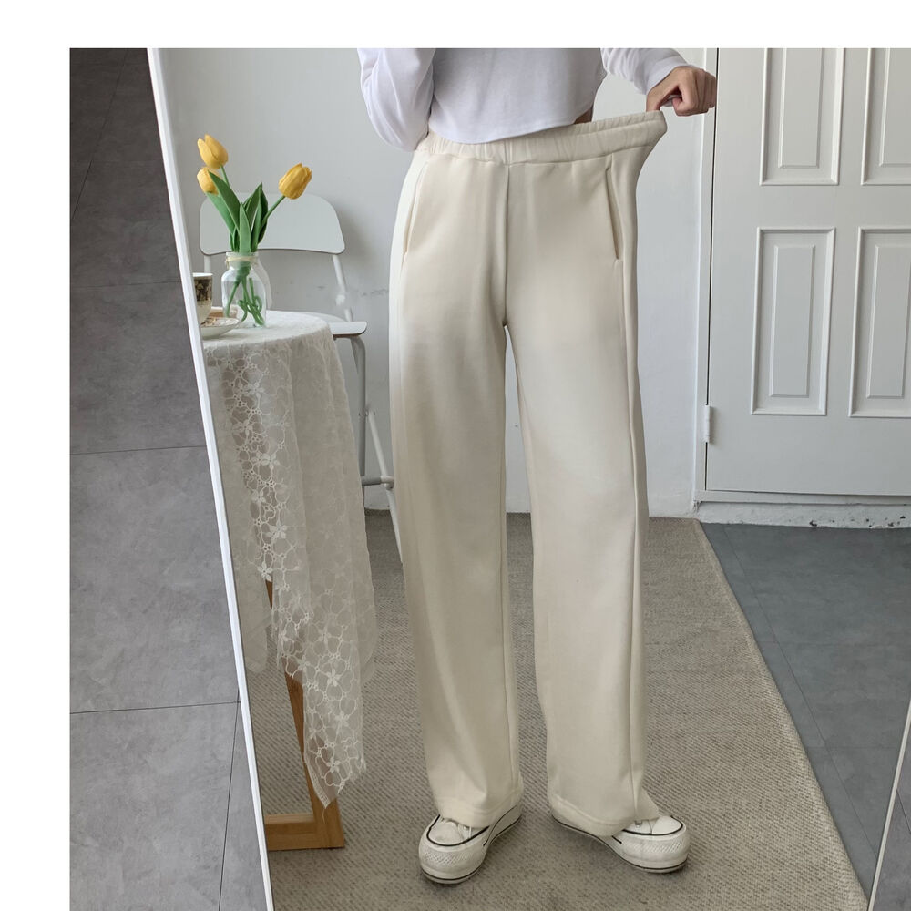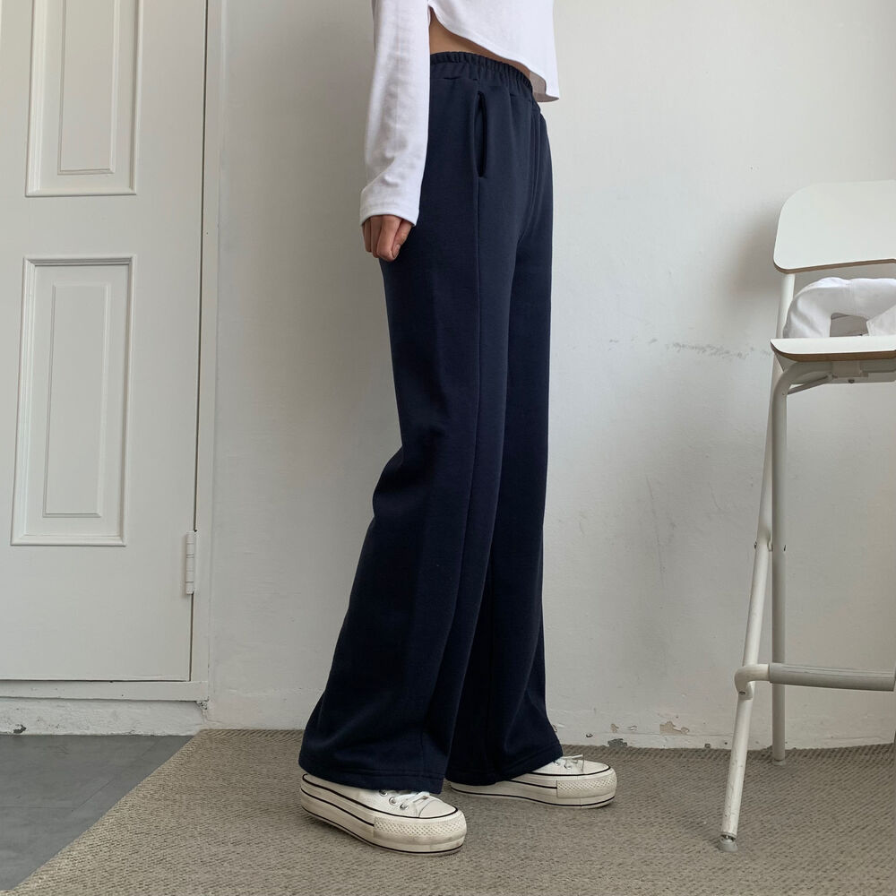 [起毛]ハイウエストワイドストレートバンディングトレーニングパンツ