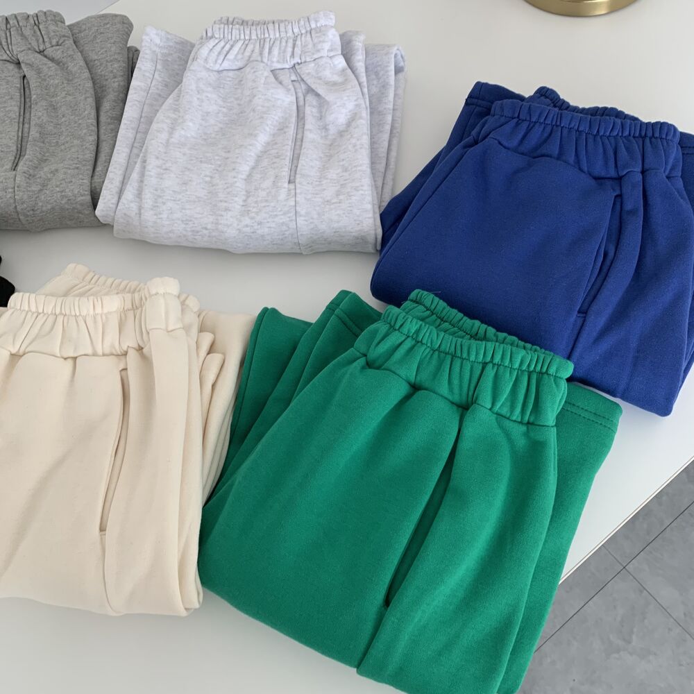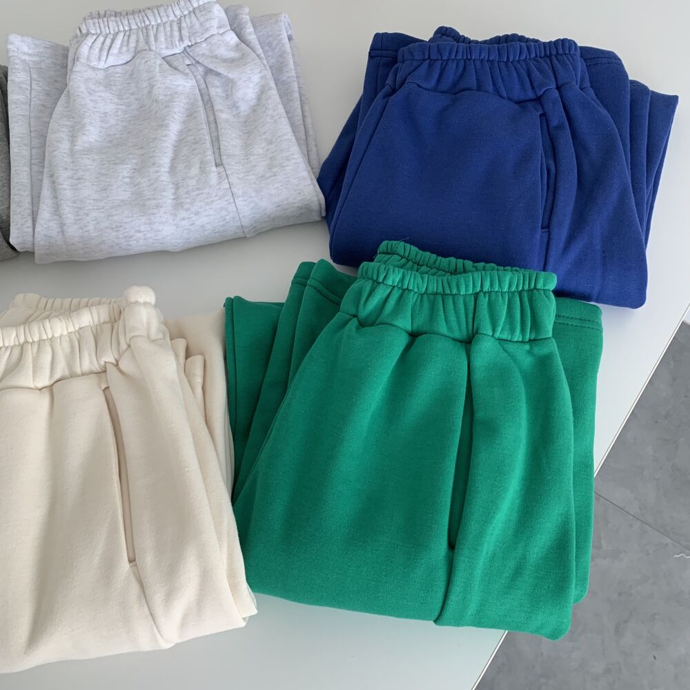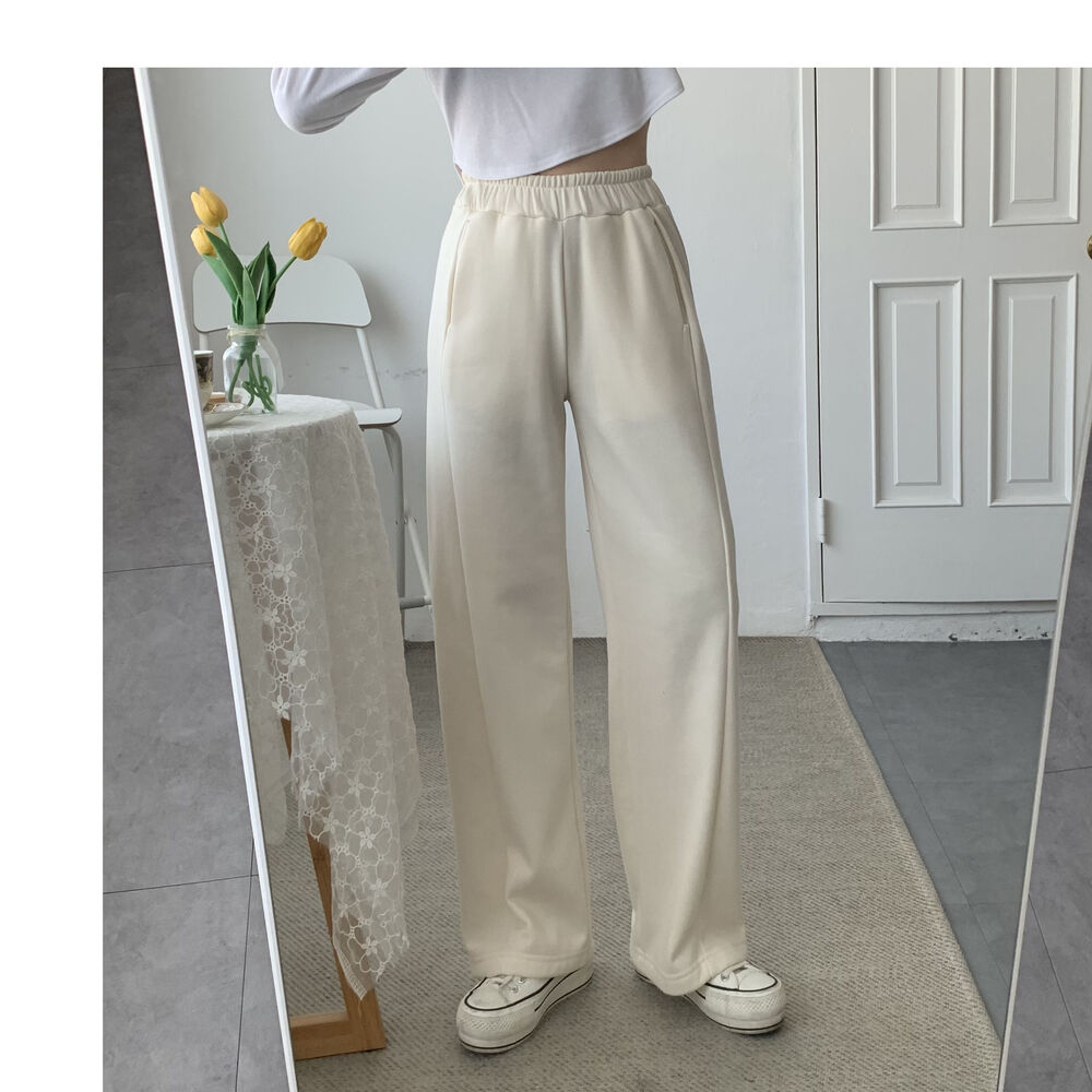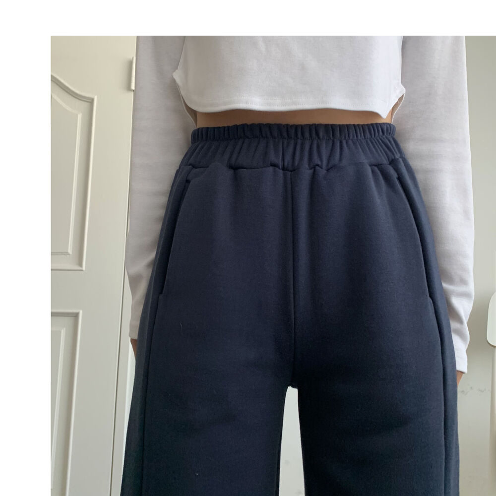 [起毛]ハイウエストワイドストレートバンディングトレーニングパンツ