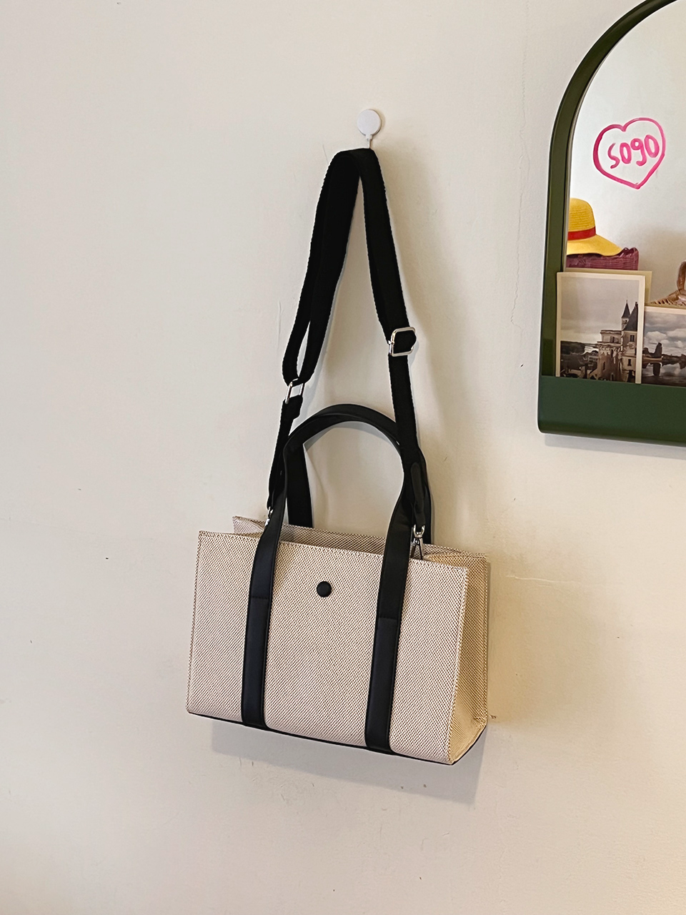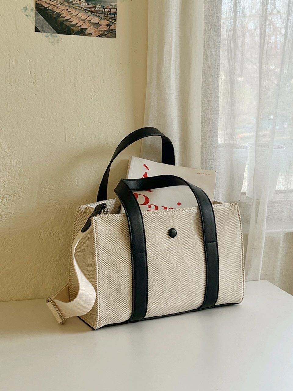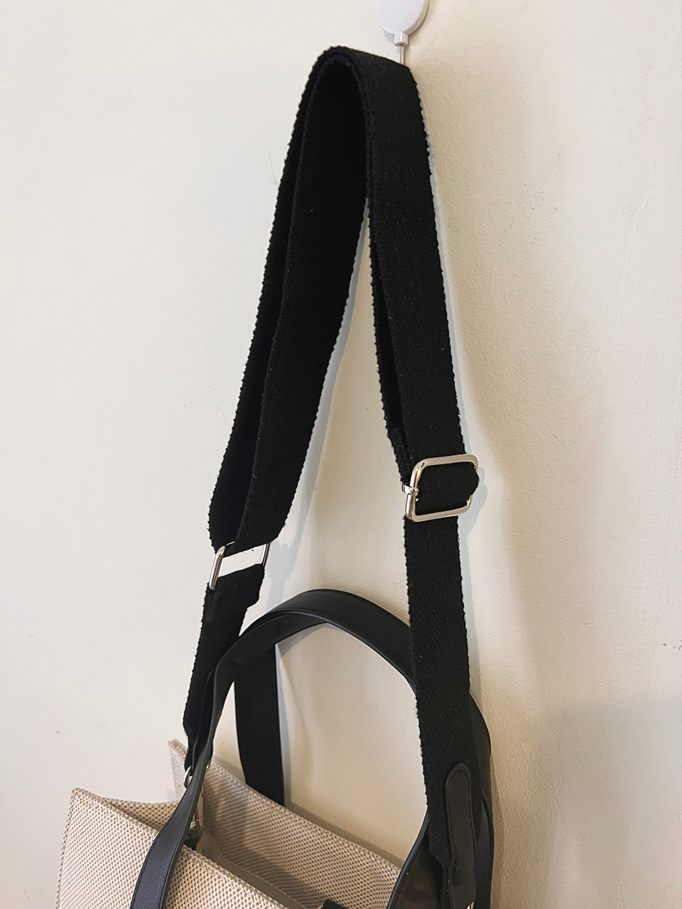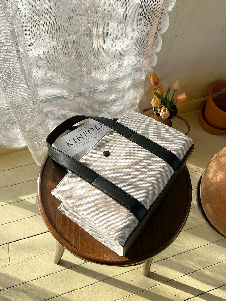 배색 웨빙 라인은 백의 밑단까지 잡아주어