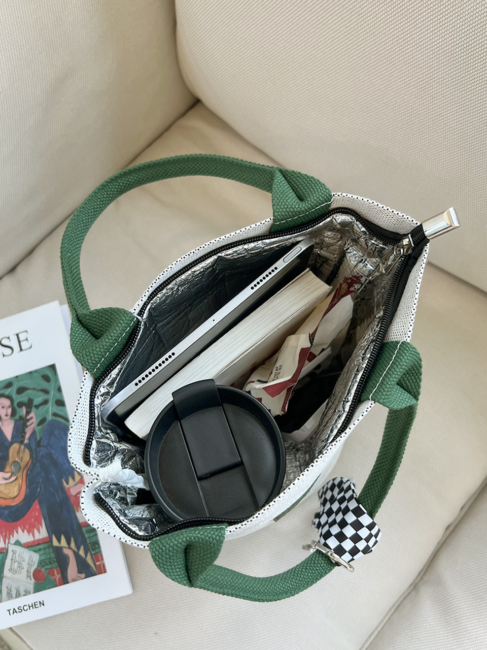 canvas jacquard tumbler tote cooling bag