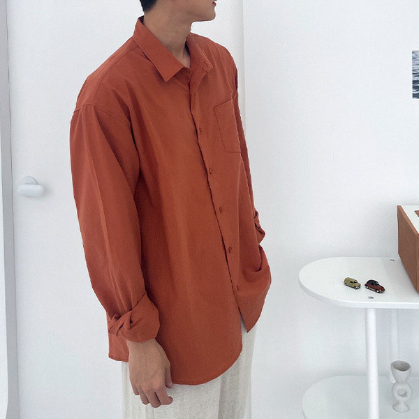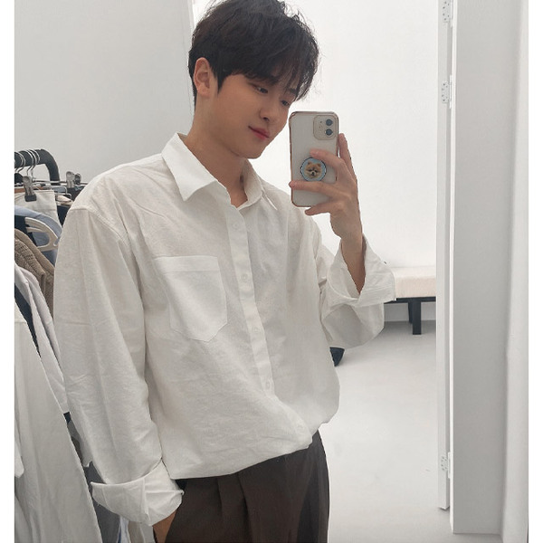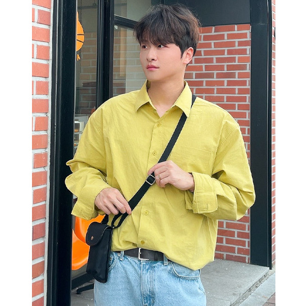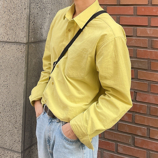 Men/ウォッシュコットンオーバーフィット長袖シャツ
