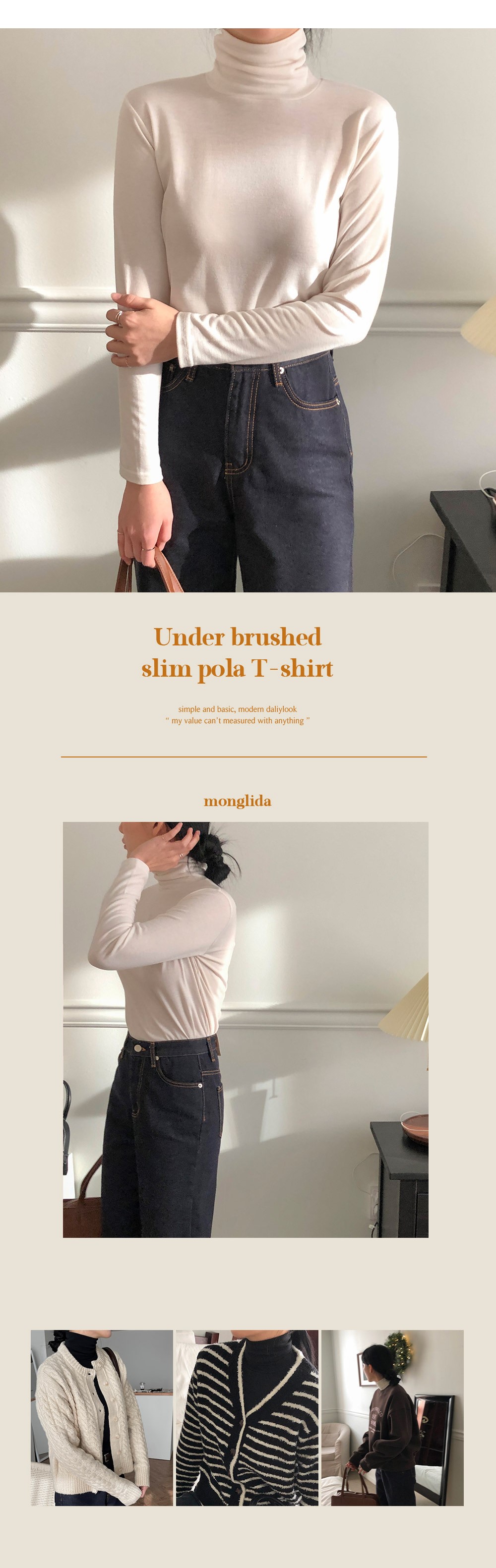 Women's/[裏起毛]スリムタートルネックTシャツ