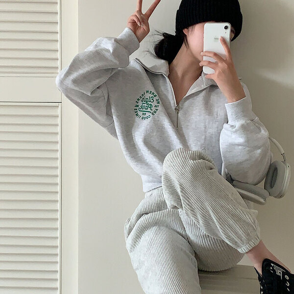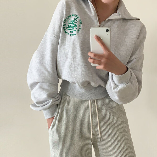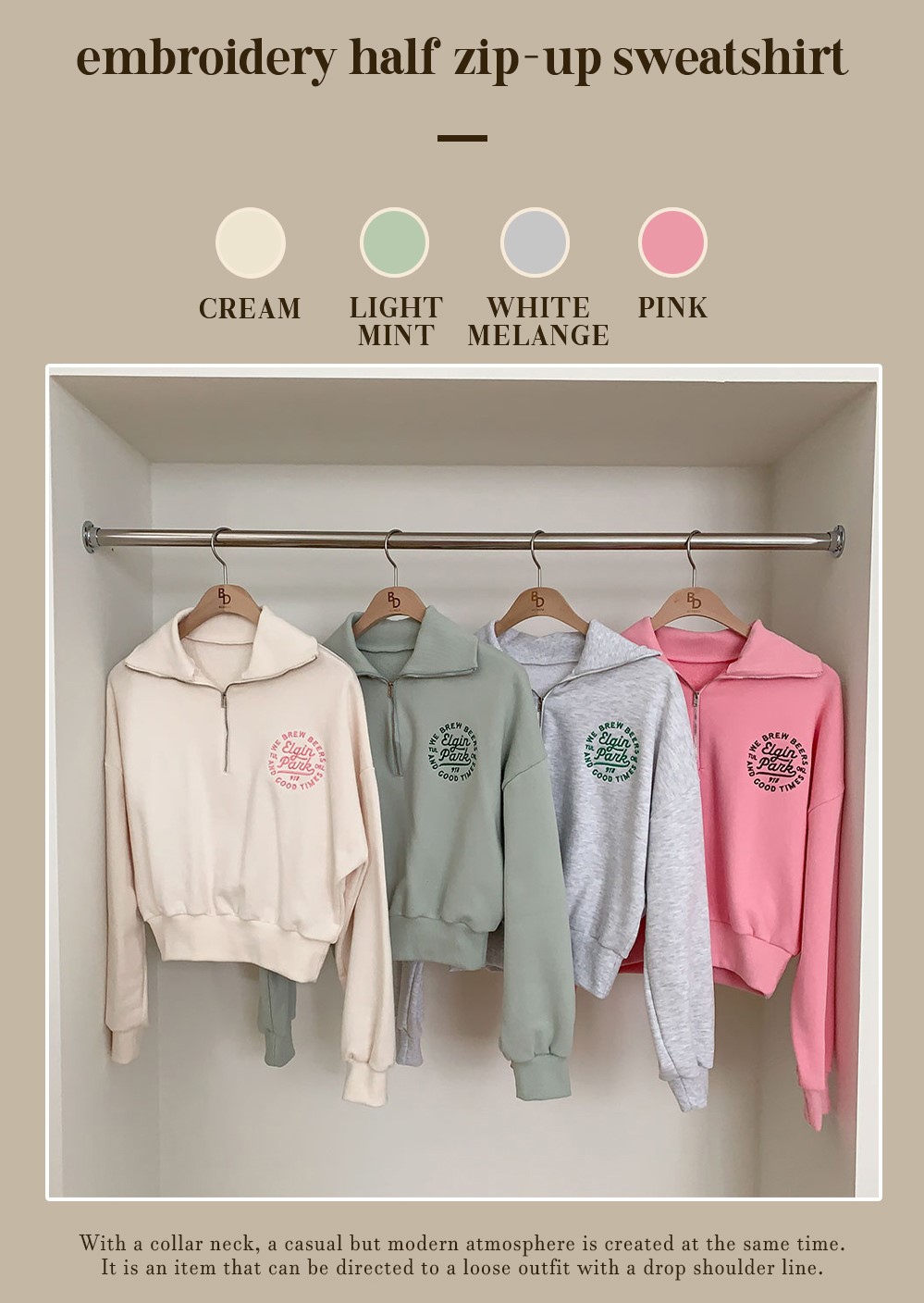 [4colo]モーメント 刺繍 ハーフパーカースウェット