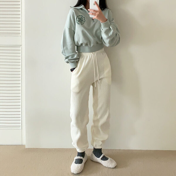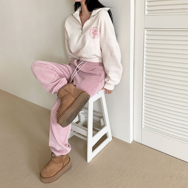 Women's/[4colo]モーメント 刺繍 ハーフパーカースウェット