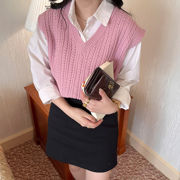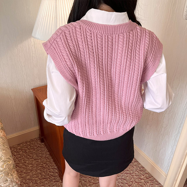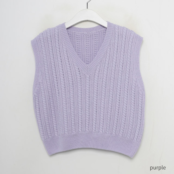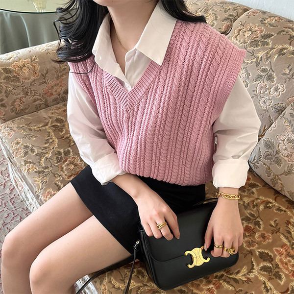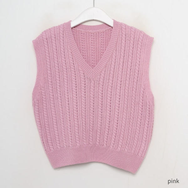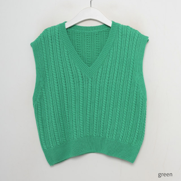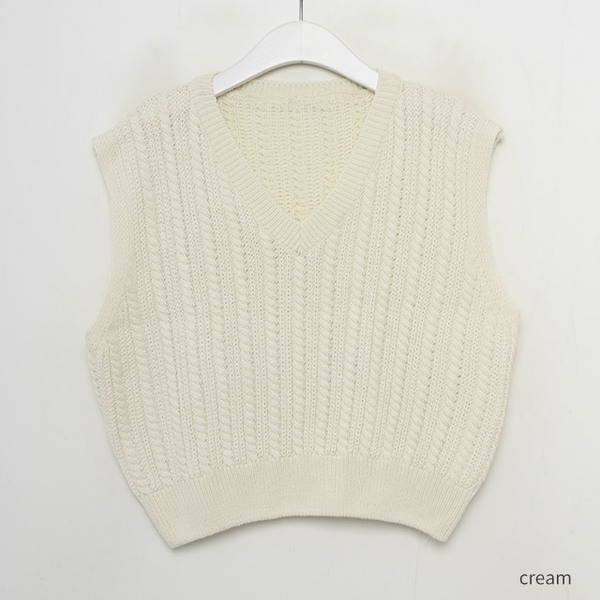 Vネックケーブルニットベスト