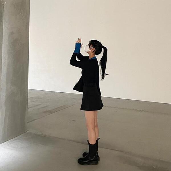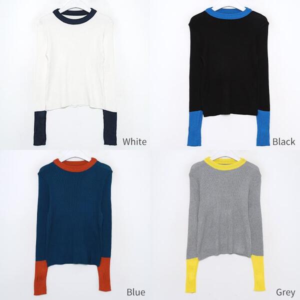 バイカラーフィンガーホールニット