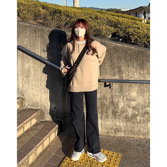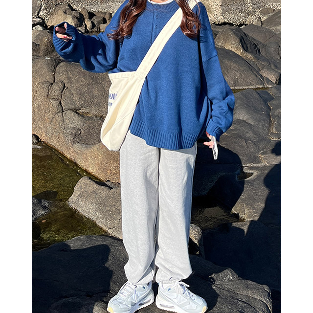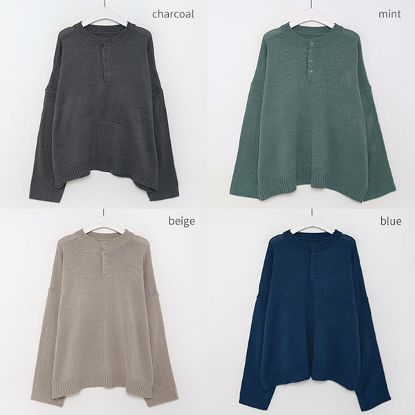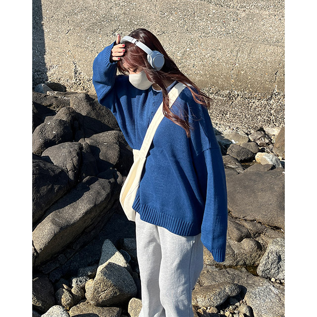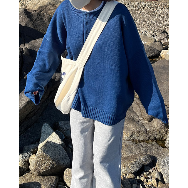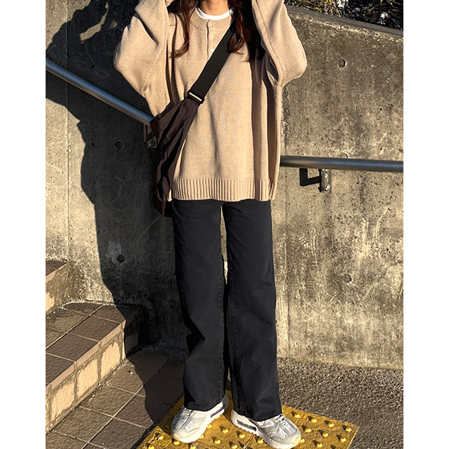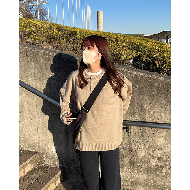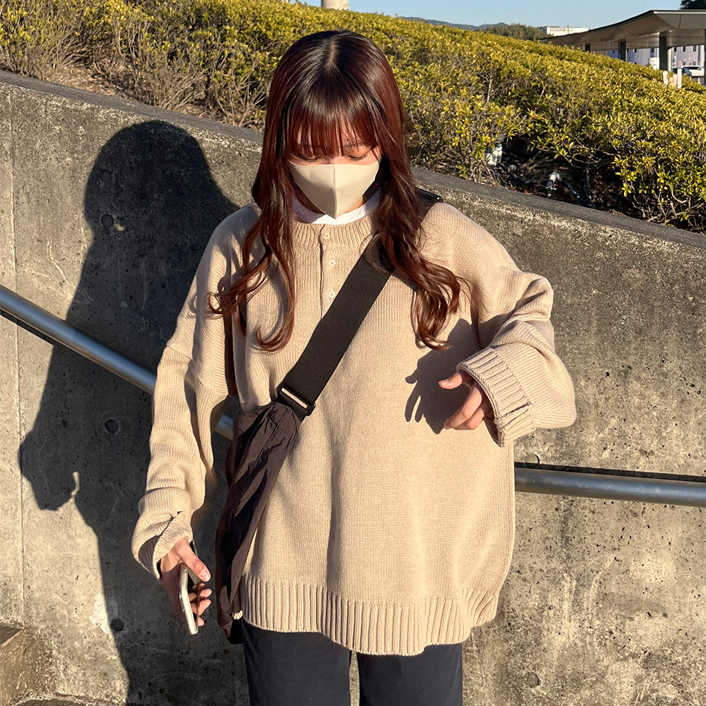 ボタンハーフルーズフィットニット