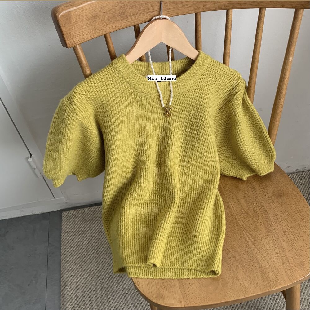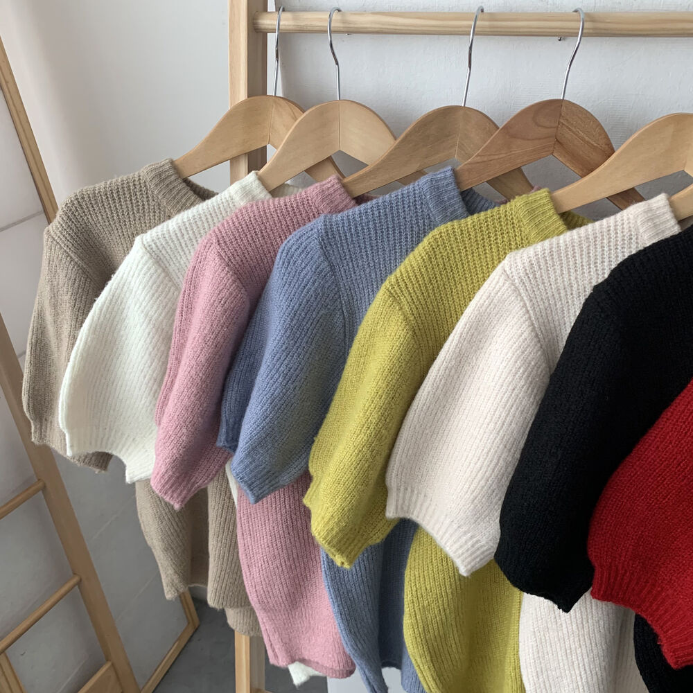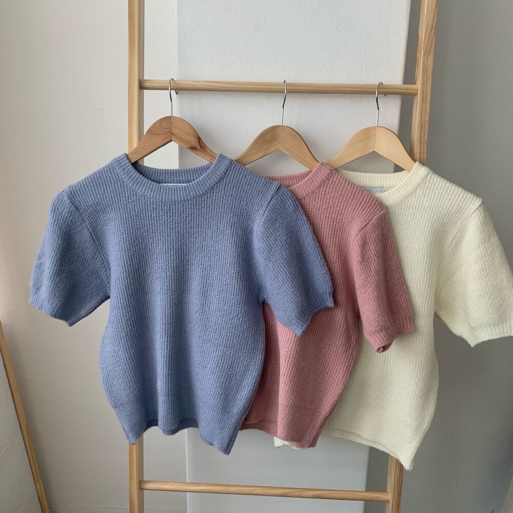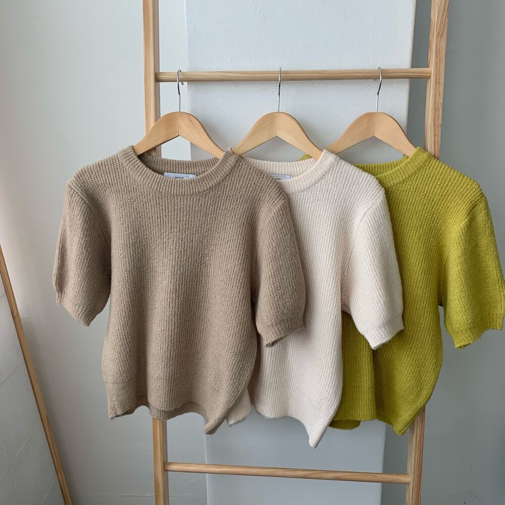 [やわらかい気心地/韓国生産] ローリング パフ ラウンド 半袖 ニット