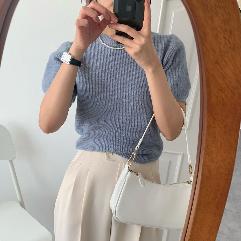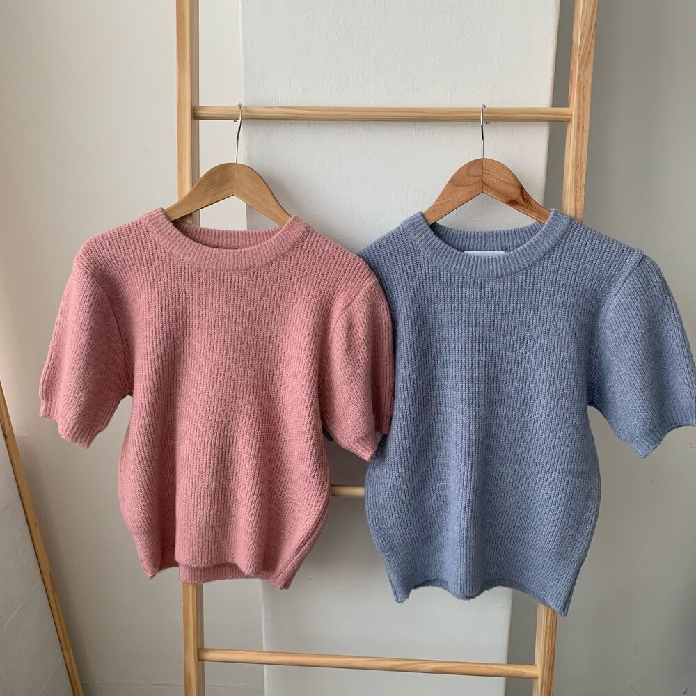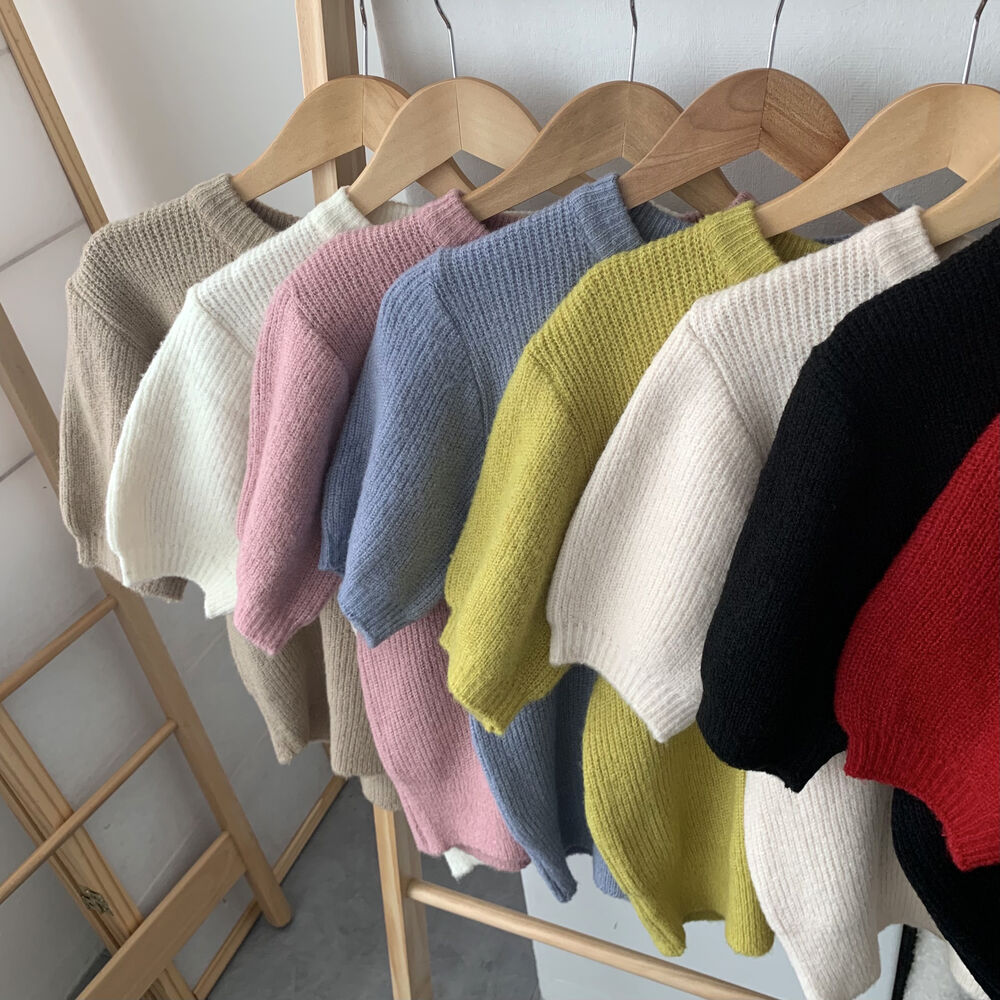 Women's/[やわらかい気心地/韓国生産] ローリング パフ ラウンド 半袖 ニット