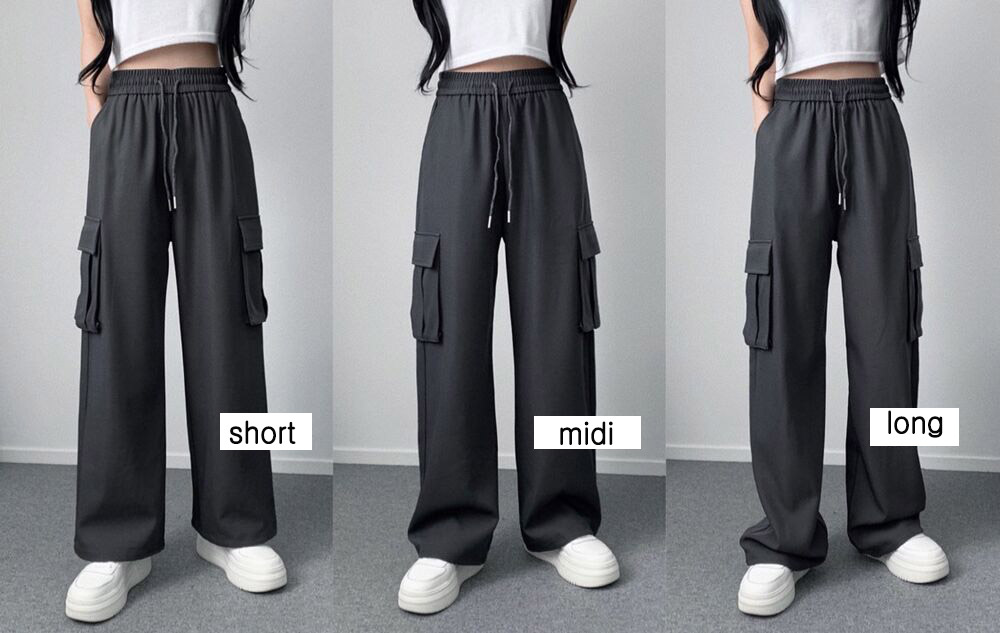 Women's/[丈選択/ストレート&ジョガー] カーゴポケットゴムワイド ツーウェイ パンツ (3color)