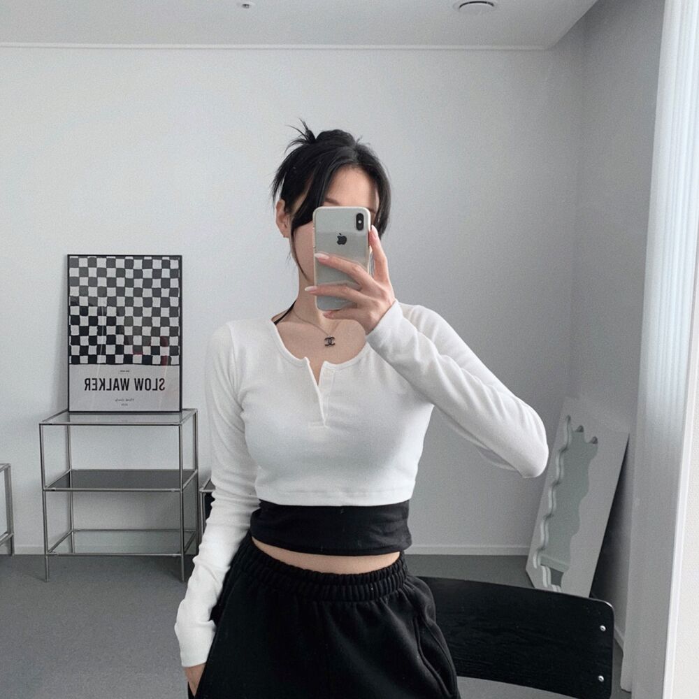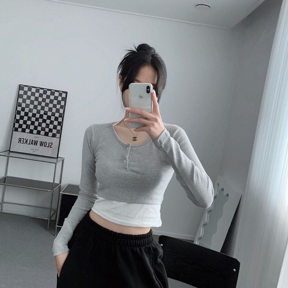 Women's/レイヤード ホールター ストラップ クロップド 長袖Tシャツ (3color)