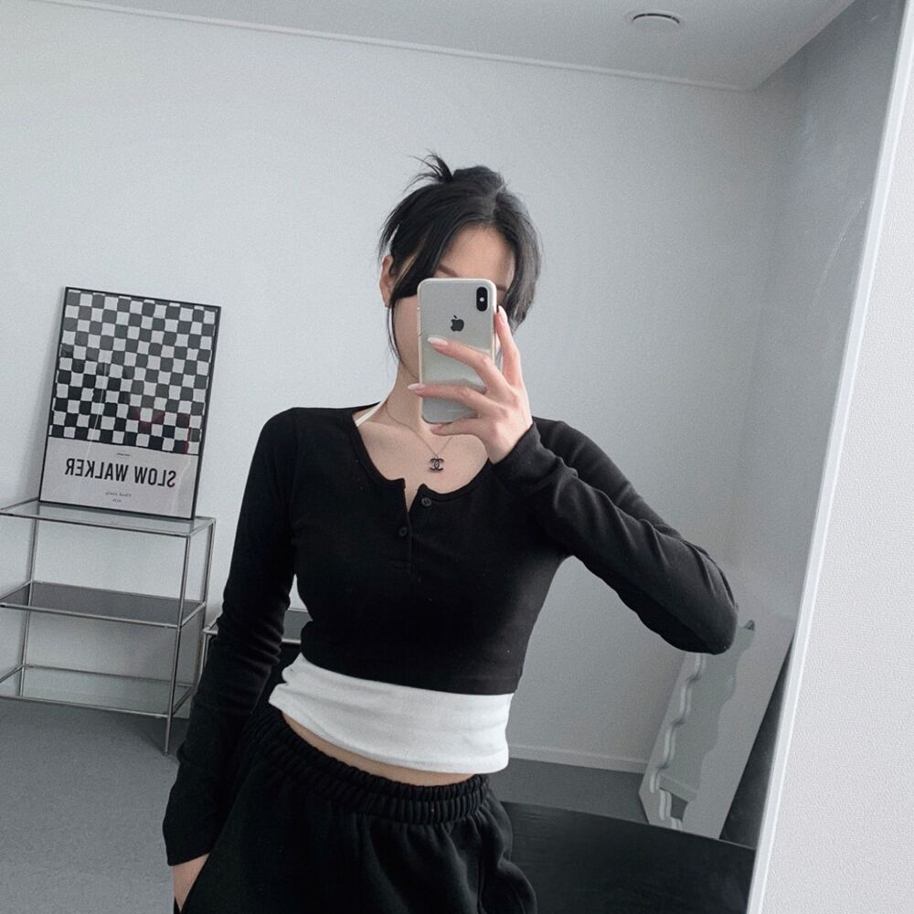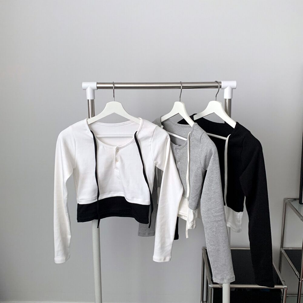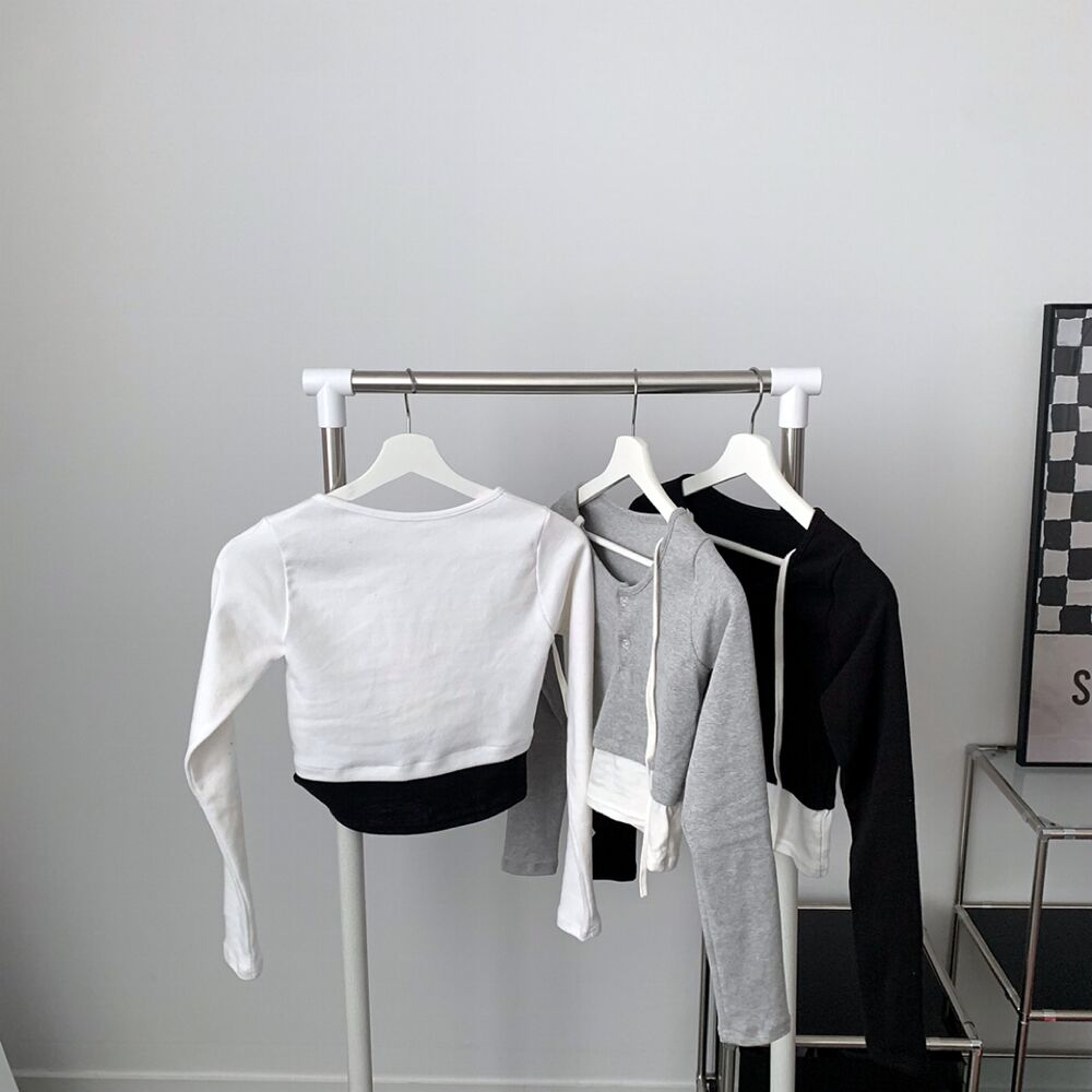 レイヤード ホールター ストラップ クロップド 長袖Tシャツ (3color)