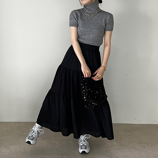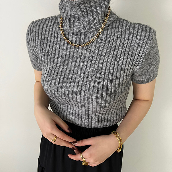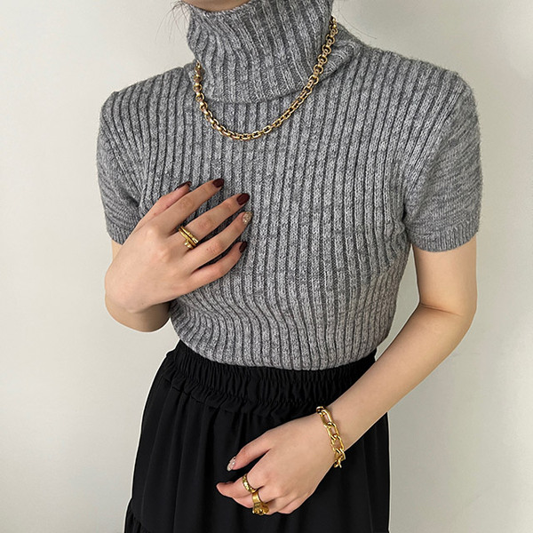 リブタートルネックニットTシャツ