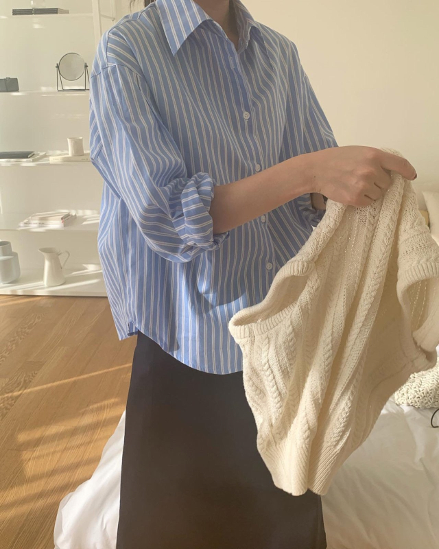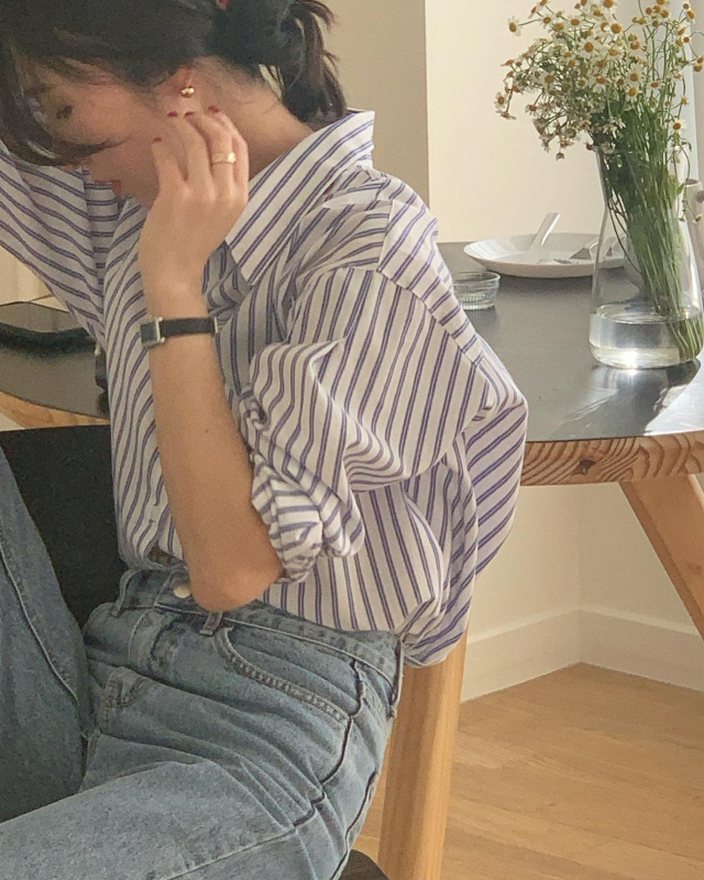 Women's/London Race Stan春オーバーサイズストライプシャツ