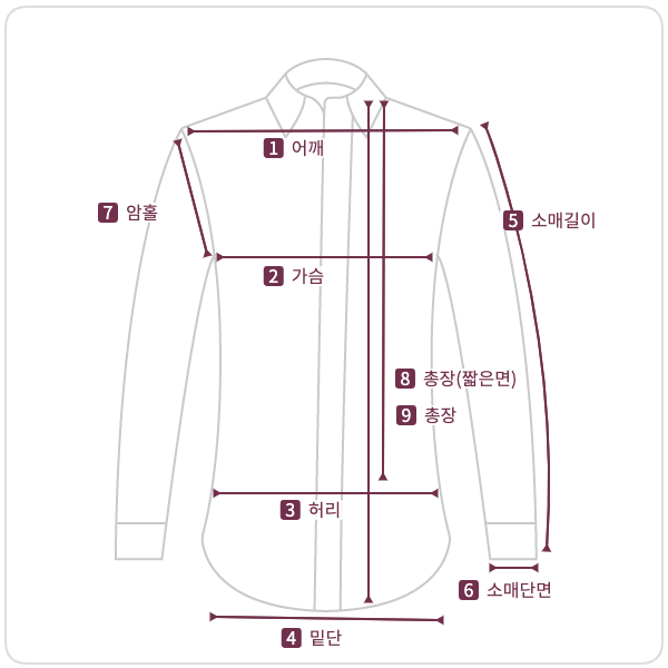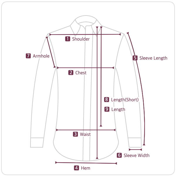 8 着丈(短) | 75 29.5 | 77 30.5 |