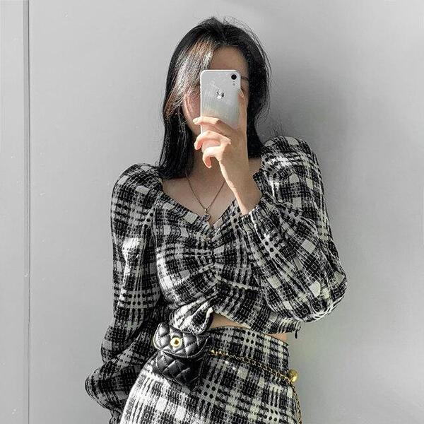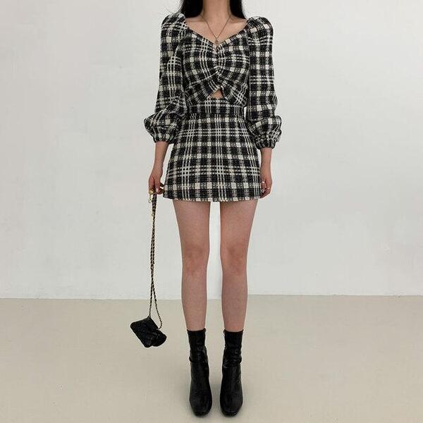 [ブラウス+スカート]ツインクルツイードセット