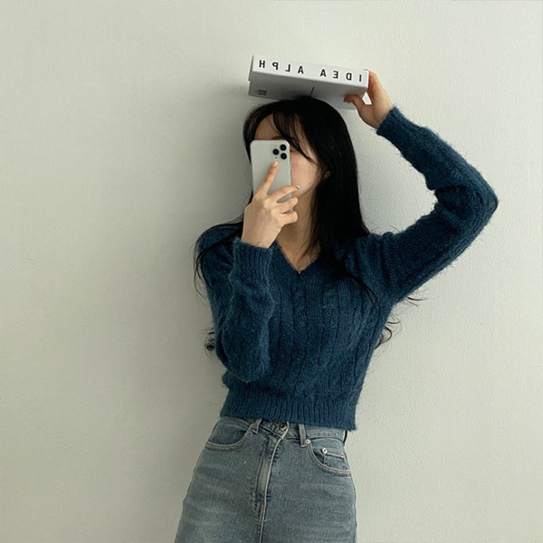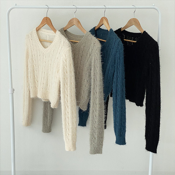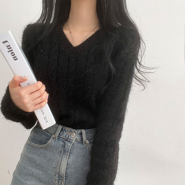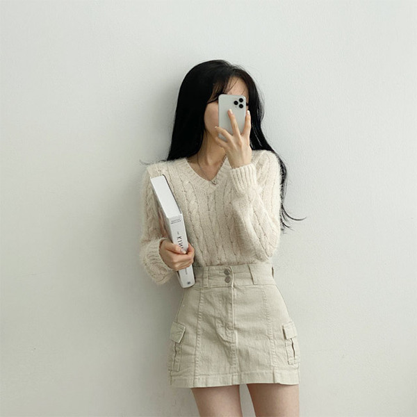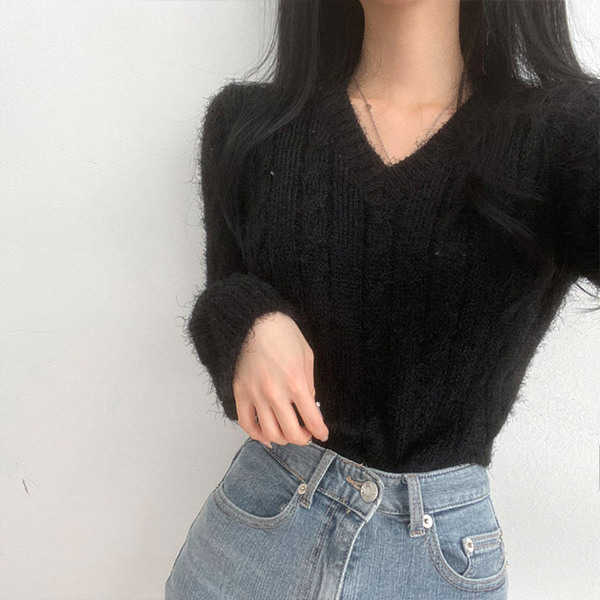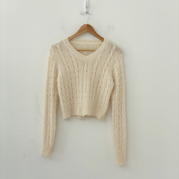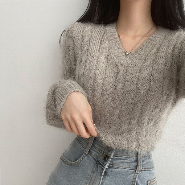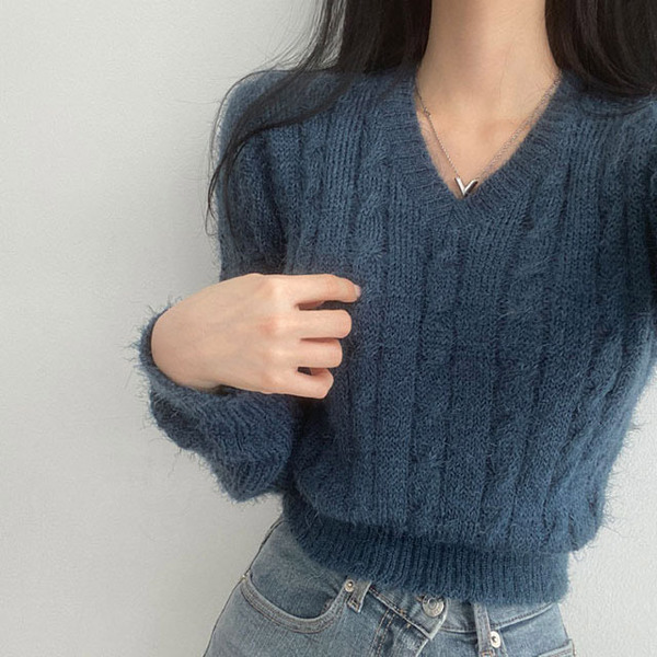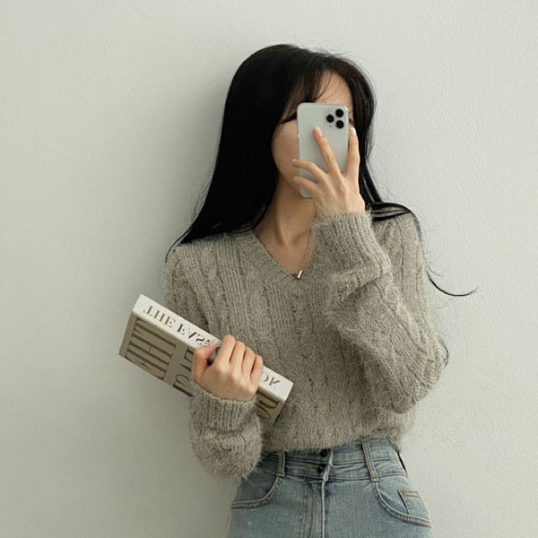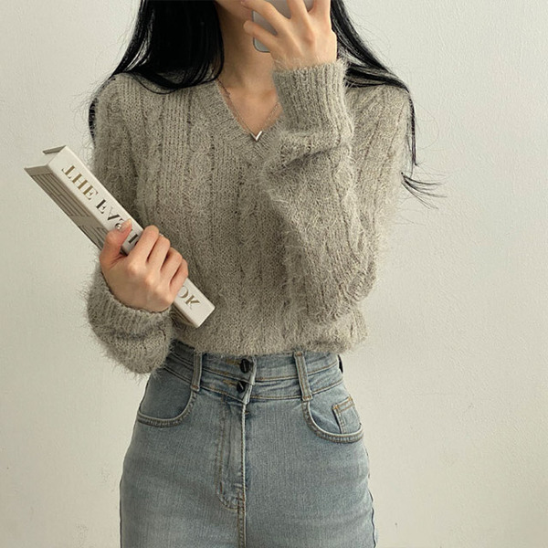 Women's/[4color]ケーブル Vネック ニット