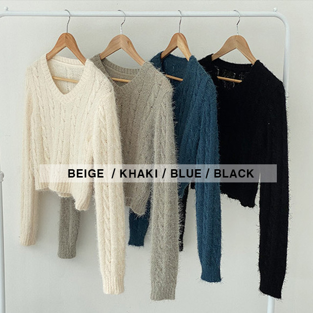 [4color]ケーブル Vネック ニット