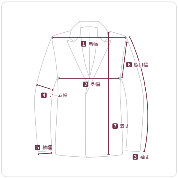 7 着丈 | 72 28.5 | 74 29 | 76 30 |