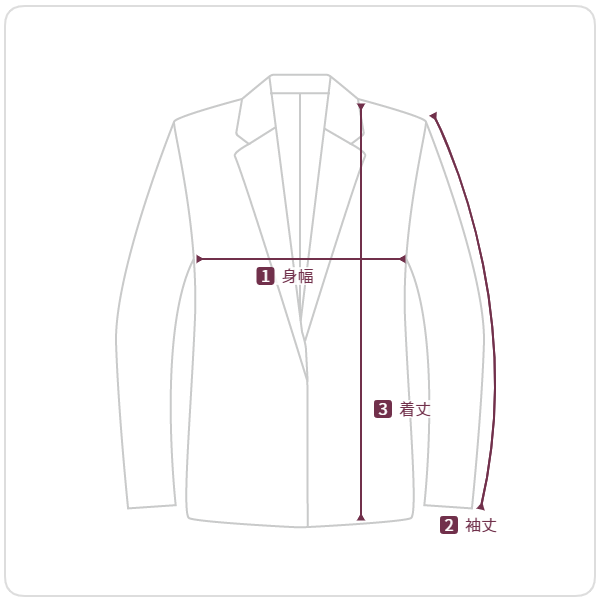 3 着丈 | 64.5 25.5 | 66 26 | 67.5 26.5 | 69 27 |