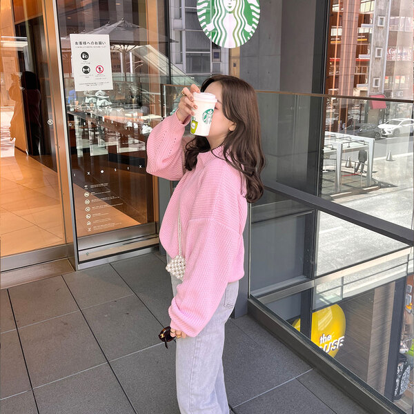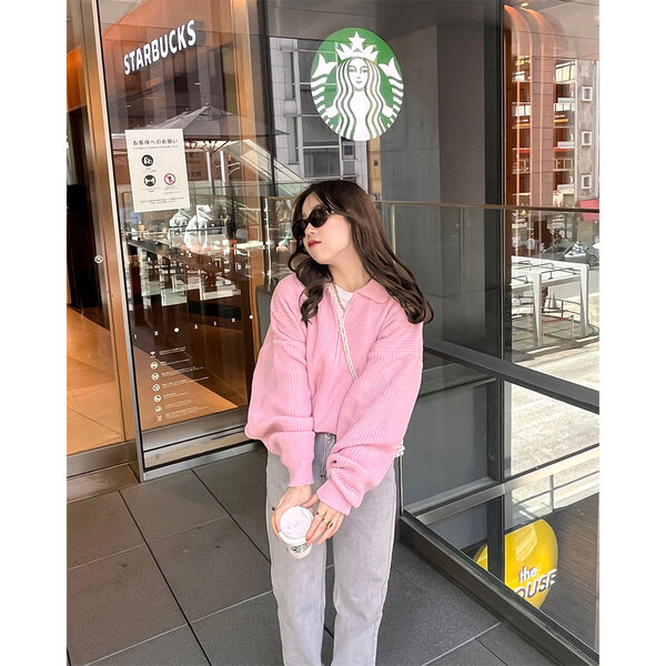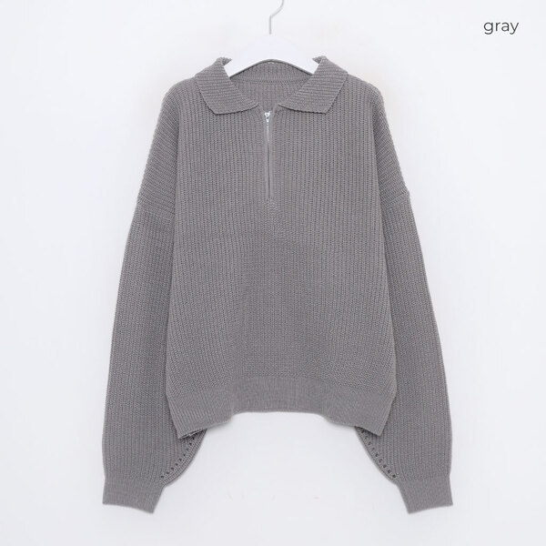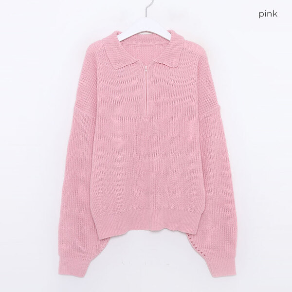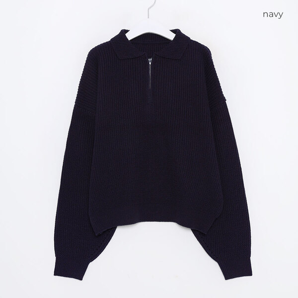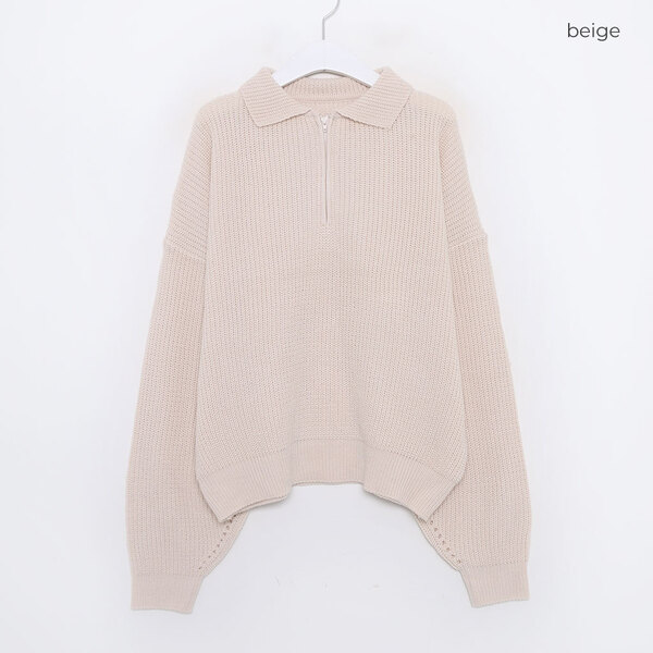 (SALE) ルーズフィットハーフジップアップニット